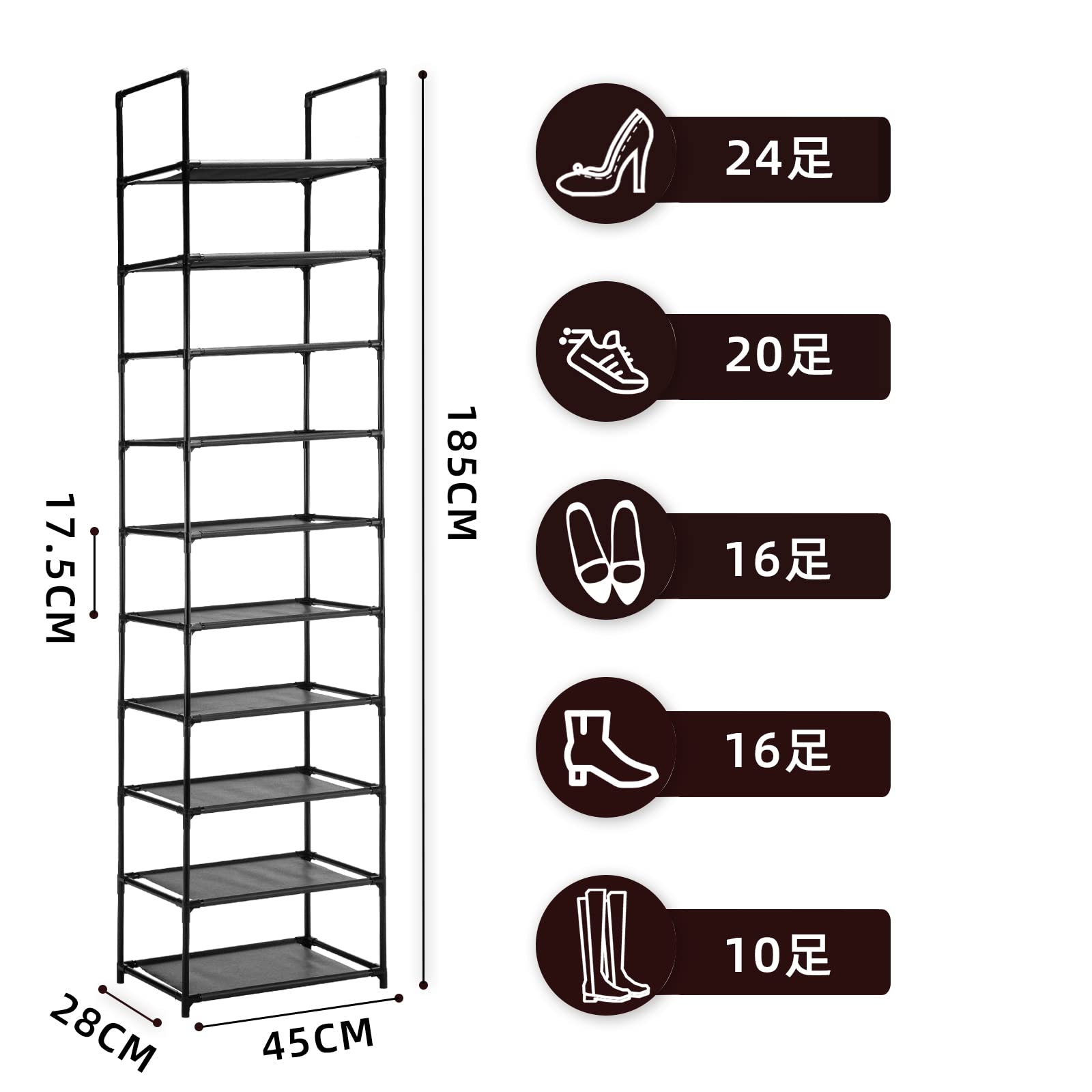 アパートの靴箱が8足ほどしか入らなくて あんまり場所をとらないよーなシューズラックが欲しくて とても安くて、サイズ感も期待以上でした! すぐ、簡単に組み立てれて軽くて意外にしっかりです。 追加のパーツも贈って非常に丁寧と思います。 収納は6段ですが、1段に2足です。 各棚の間の高さもちょうどよく、ハイトップスニーカーが入るくらいです。【一つの棚を取り外し可能なものはトールブーツに合うと思う試してみたい!!】 靴もスリッパも小物も全部置ける収納力。 部屋に置いても全然邪魔にならずに余分な靴が置けるのが嬉しい!!!