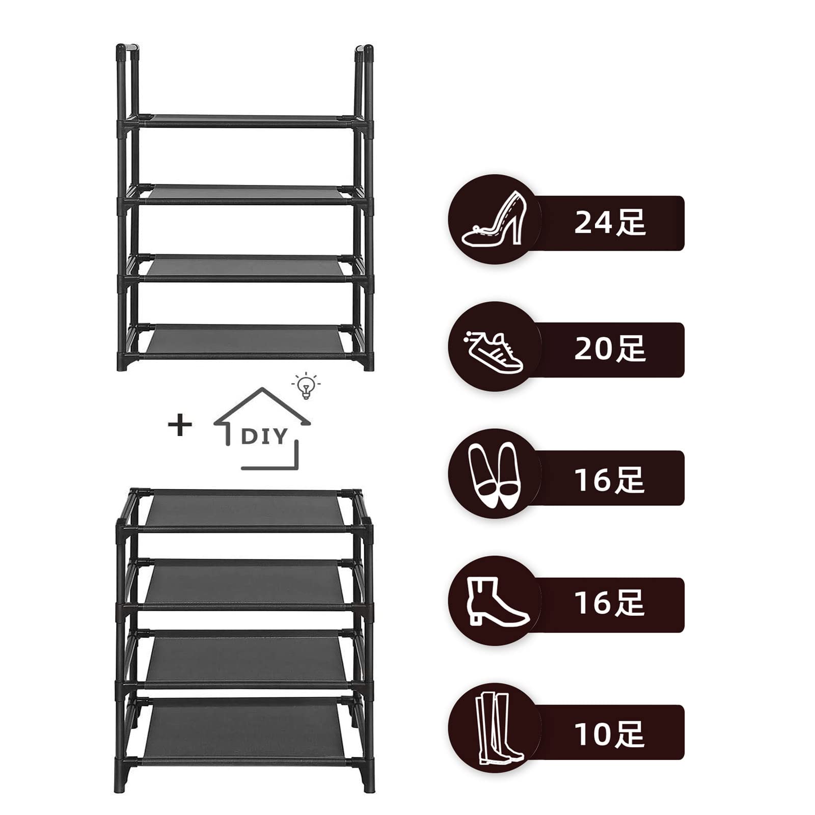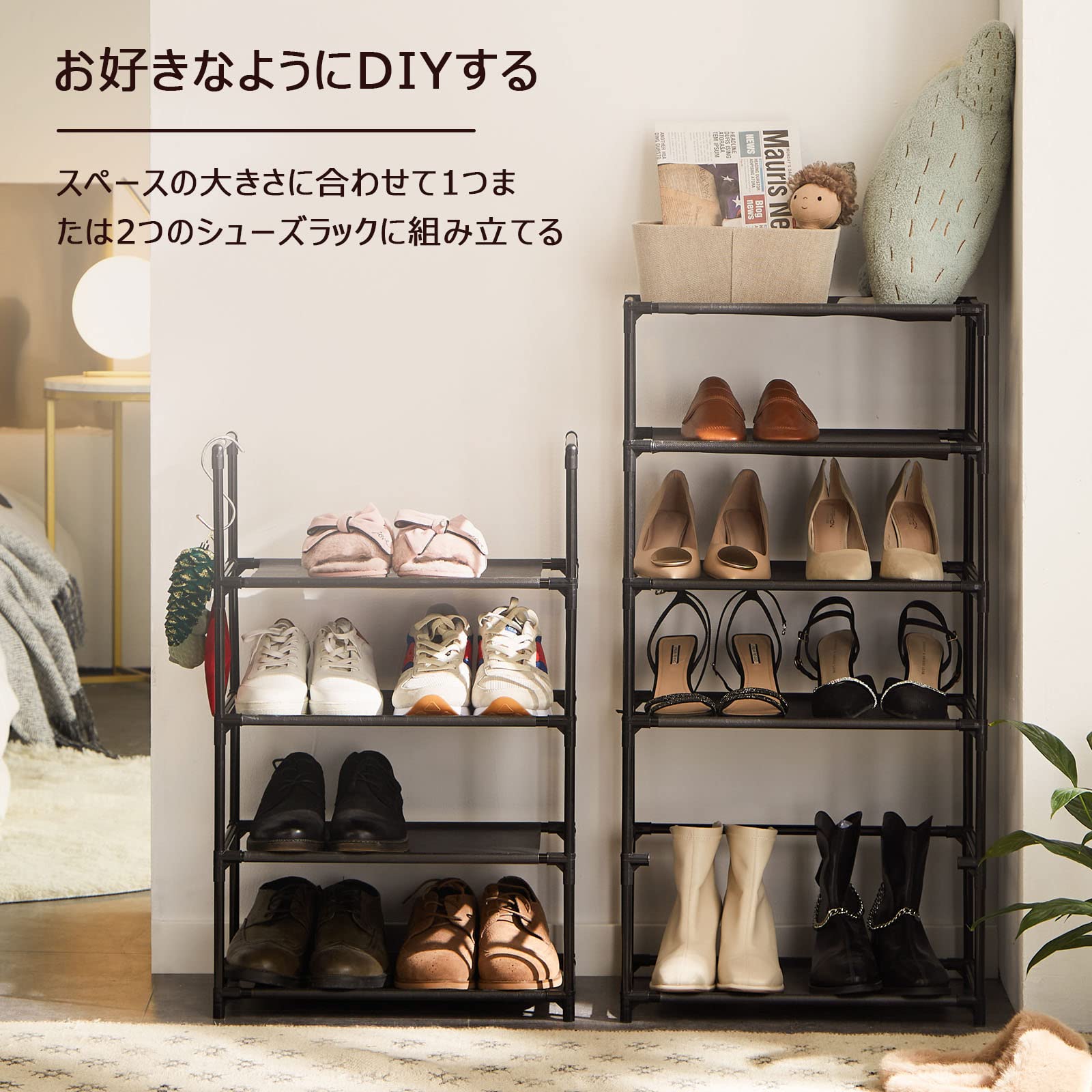 YOUDENOVA シューズラック10段 靴収納 分割可 シューズラックスリム 省スペース 組み立て式 10足 不織布 玄関に靴を効率収納 (ブラック、10段)