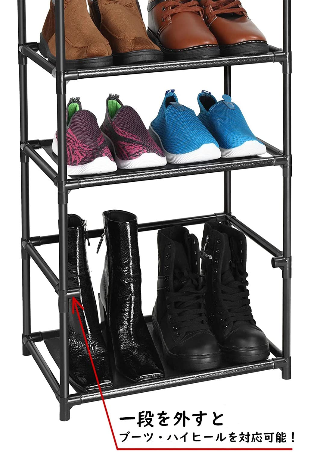 シューズラック 10段 靴収納 18-20足 靴箱ラック シューズラック 省スペース 組み立て式 靴棚 下駄箱 玄関に靴を効率収納 幅約45cm×奥行27cm×高さ176cm(ブラック)