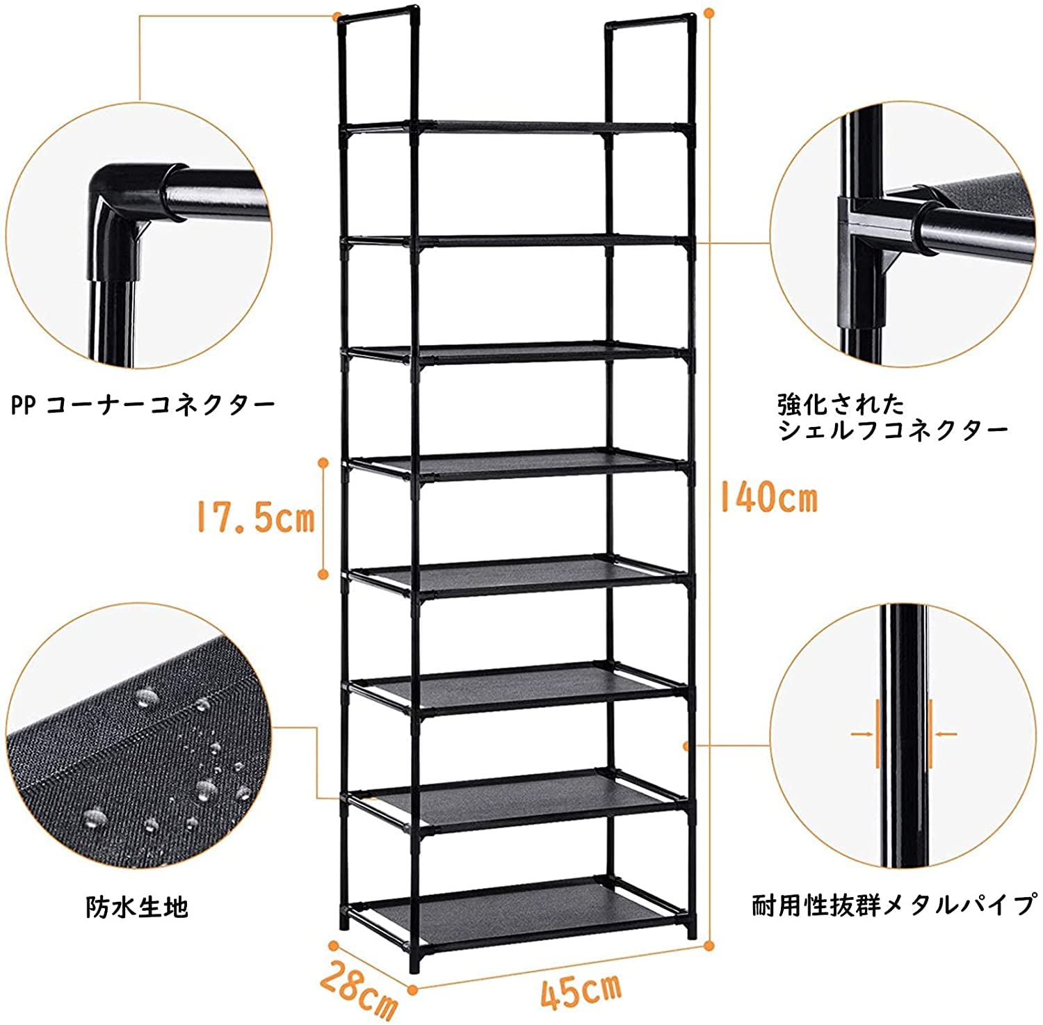 YRCBEHFU シューズラック8段 靴収納 最新防塵版 シューズラックスリム 省スペース 進化した不織布 靴棚 寝室/玄関に靴を効率収納 靴入れ 組み立て式 幅約30×奥行30×高さ140cm(8段、ブラック)