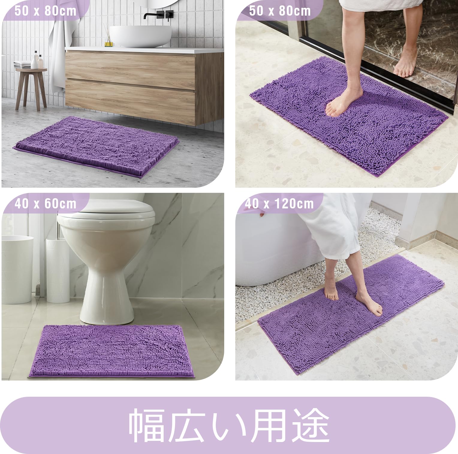 バスマット 速乾 洗える お風呂マット 足拭きマット 吸水 ふわふわ もこもこ マイクロファイバー すべり止め 浴室 玄関 洗面所 キッチン マット (パープル, 50×80cm)