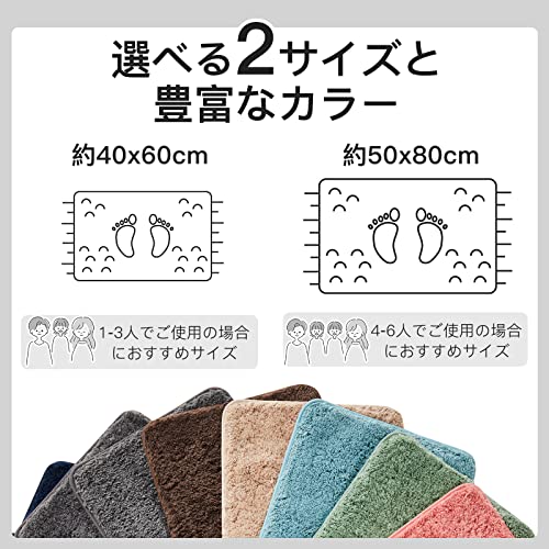 バスマット 大判 速乾 洗える お風呂マット 滑り止め 足拭きマット 吸水 ふわふわ マイクロファイバー 浴室 玄関 洗面所 マット 50X80CM