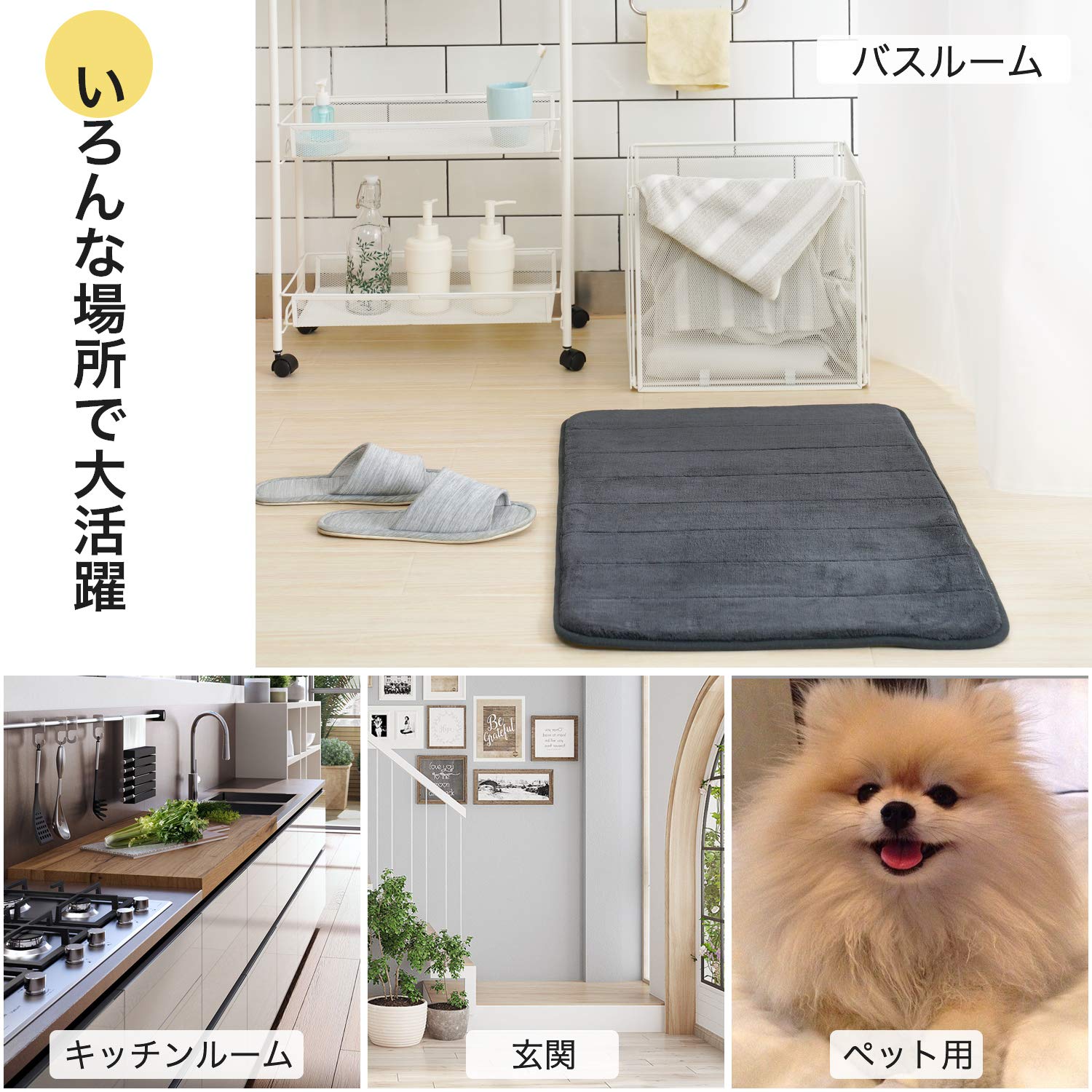 浴室や、バスマット、玄関、寝室などいろんな場所に使え、実用性が高い。