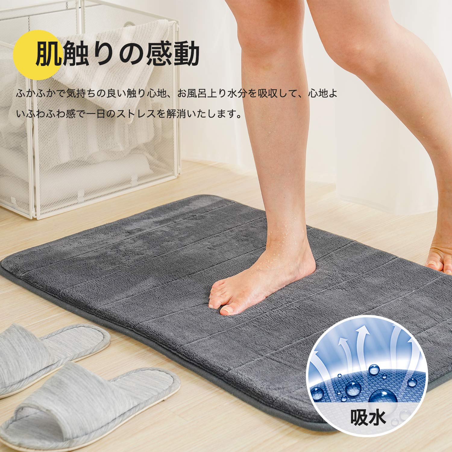 *無地でシンプルなマットはバスルームだけでなく、低反発ウレタンが浴室で足の疲ロれを緩ロ和し、おしゃれなデザインを玄関にもおすすめします。
