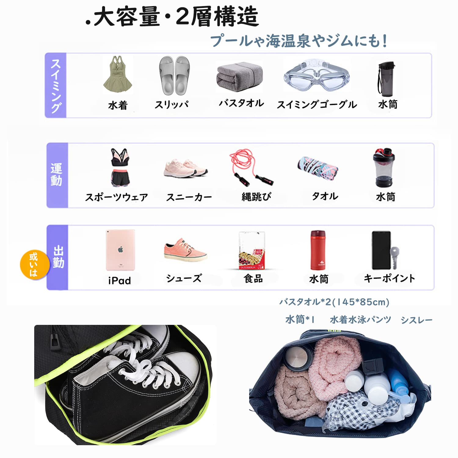 ZUXNZUX ビーチバッグ プールバッグ メッシュバッグ ビーチ/ショッピング/水泳/ジム/スパ/温泉/旅行用 バッグ