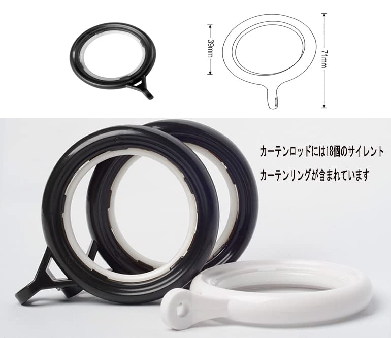 カーテンリングはサイレントリングで、シャワーカーテンやカーテンを引きずるときに音がしません。