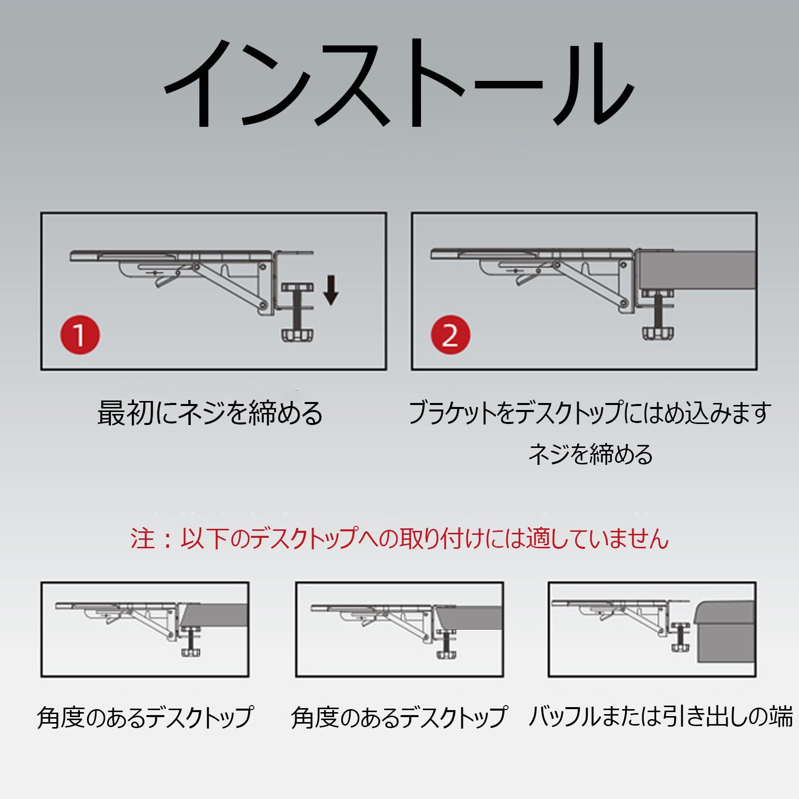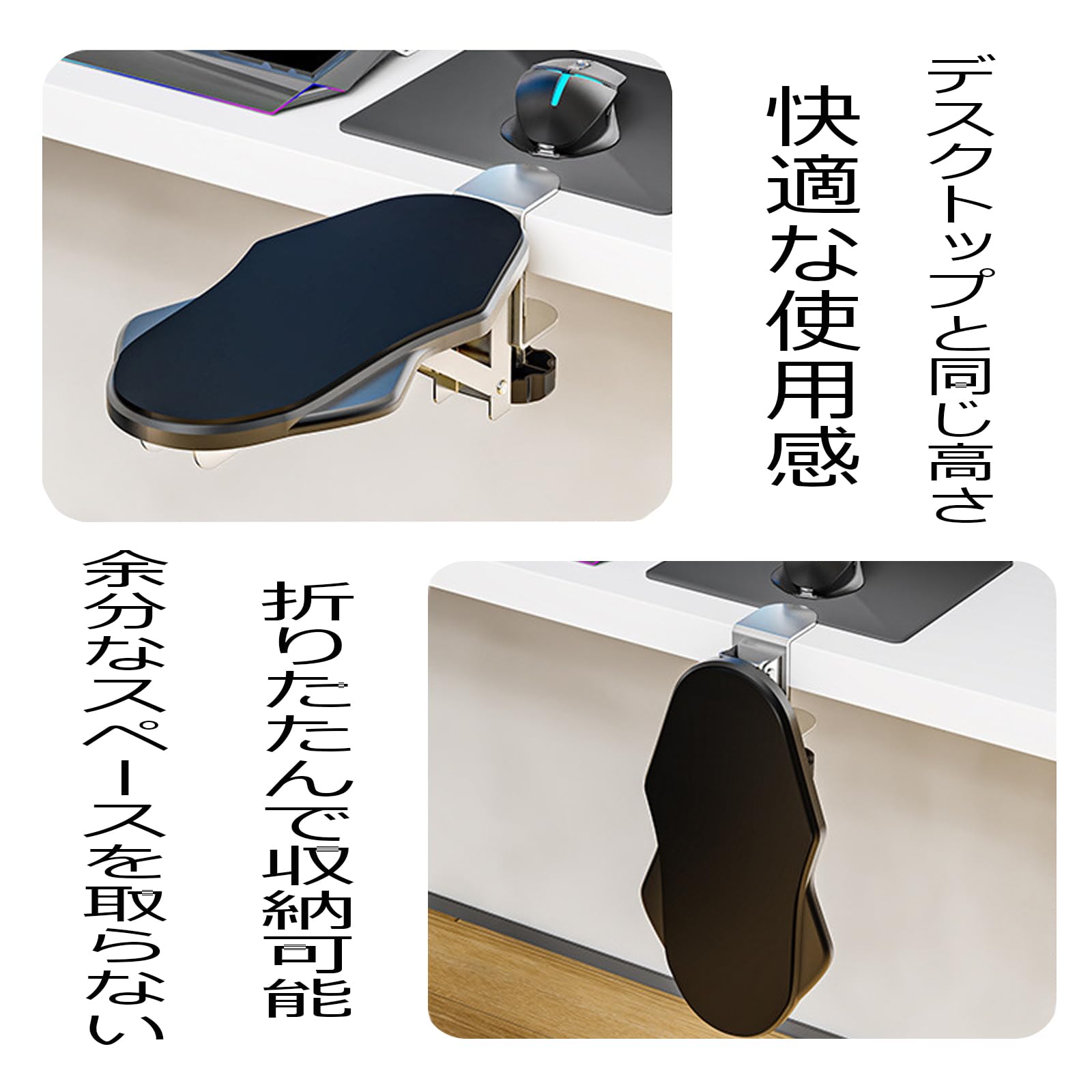 ドリル不要の革新的デザイン 穴あけ不要で、最も快適な位置に簡単に設置でき、デスクトップを傷つけません。