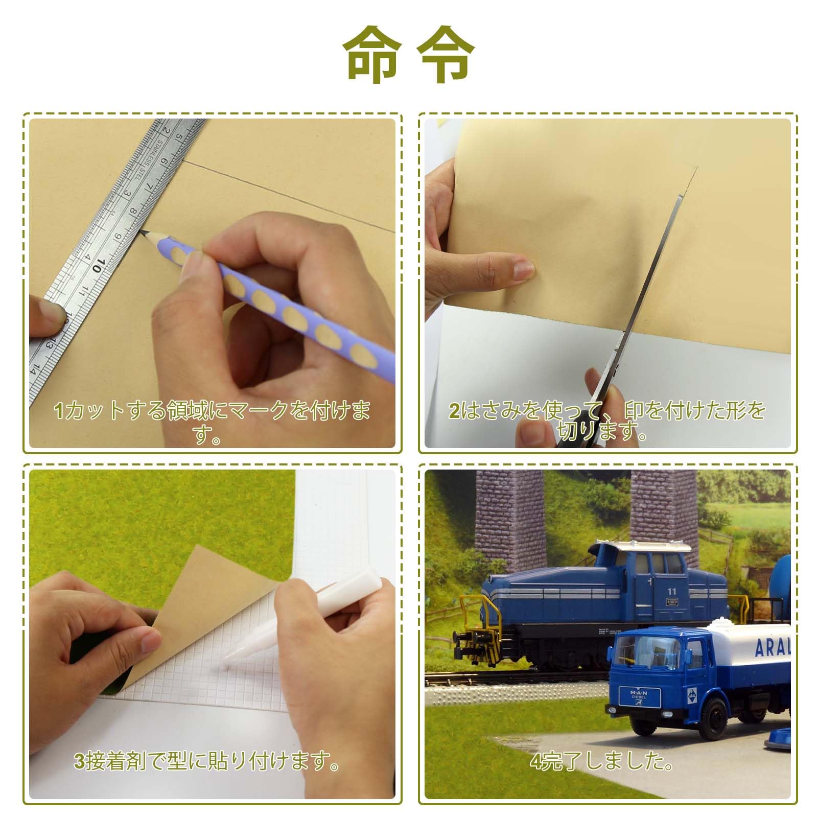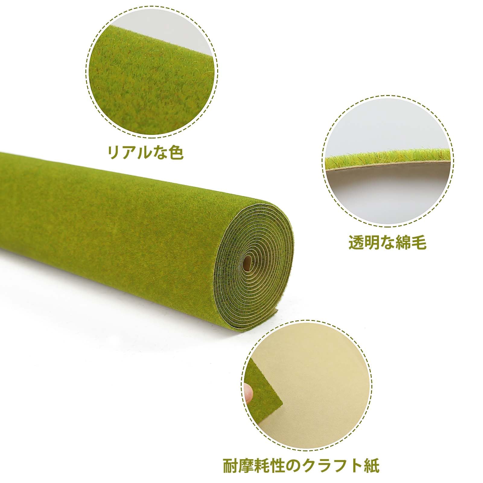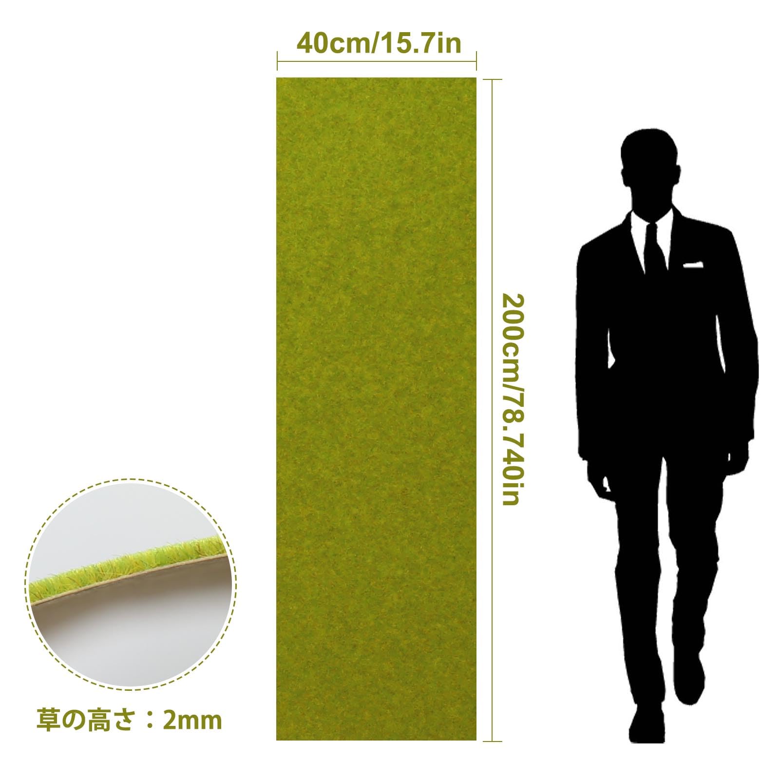 芝生マット 大判 1枚入り 人工芝 ロール マット 2mm厚 400㎜×2000㎜ グラス模型 鉄道模型 建物モデル 装飾 風景 箱庭 ジオラマ DIY (イエローグリーン)