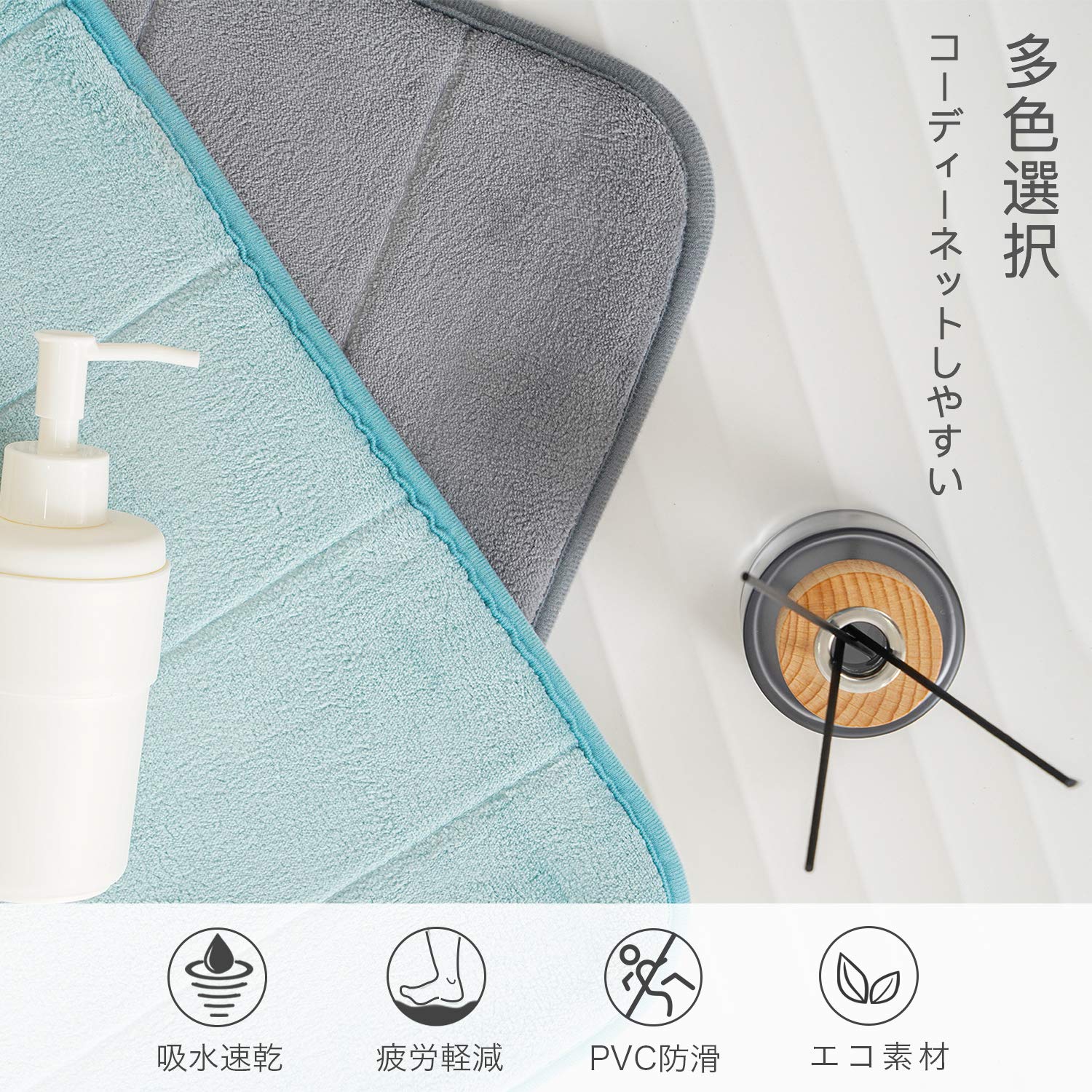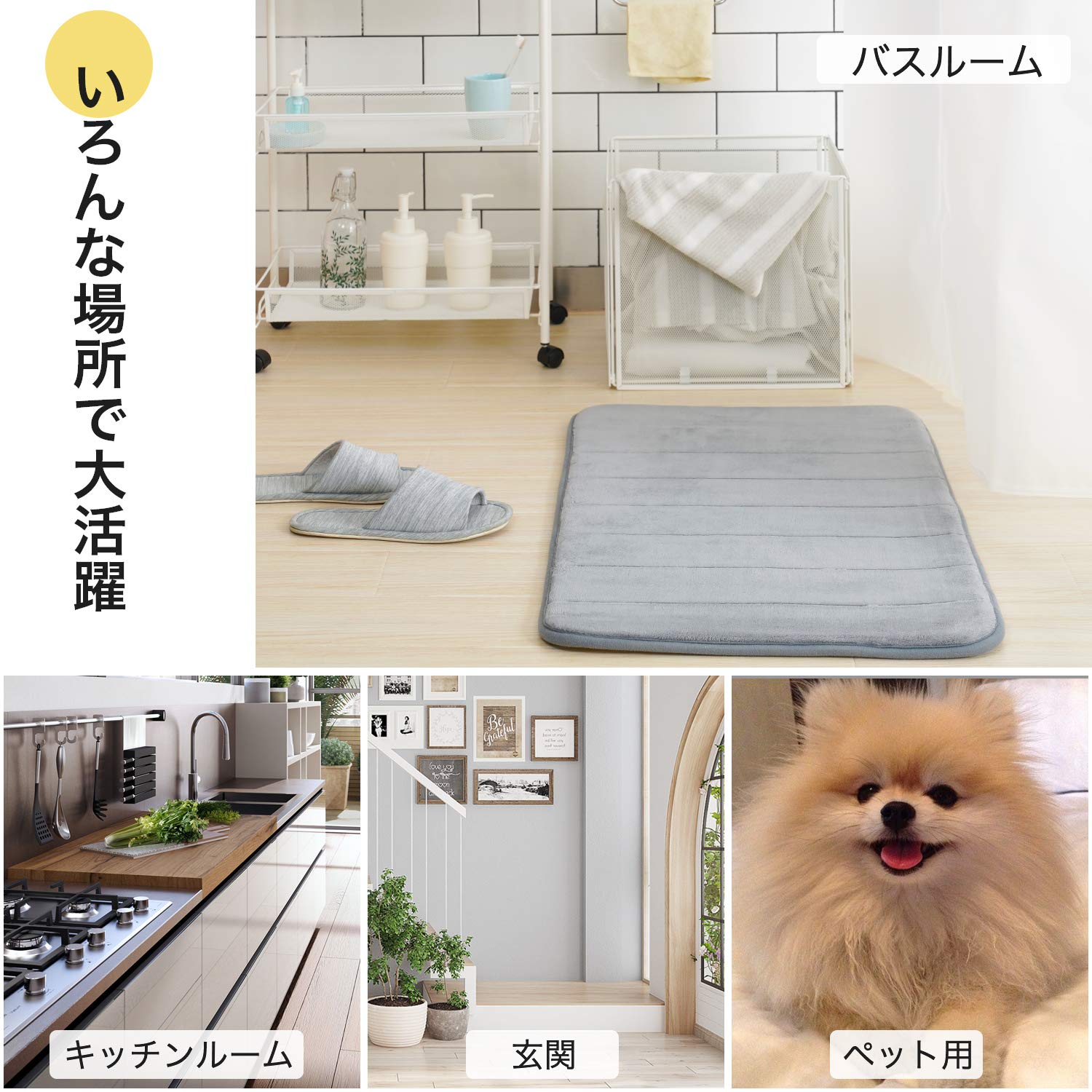 *無地でシンプルなマットはバスルームだけでなく、低反発ウレタンが浴室で足の疲ロれを緩ロ和し、おしゃれなデザインを玄関にもおすすめします。
