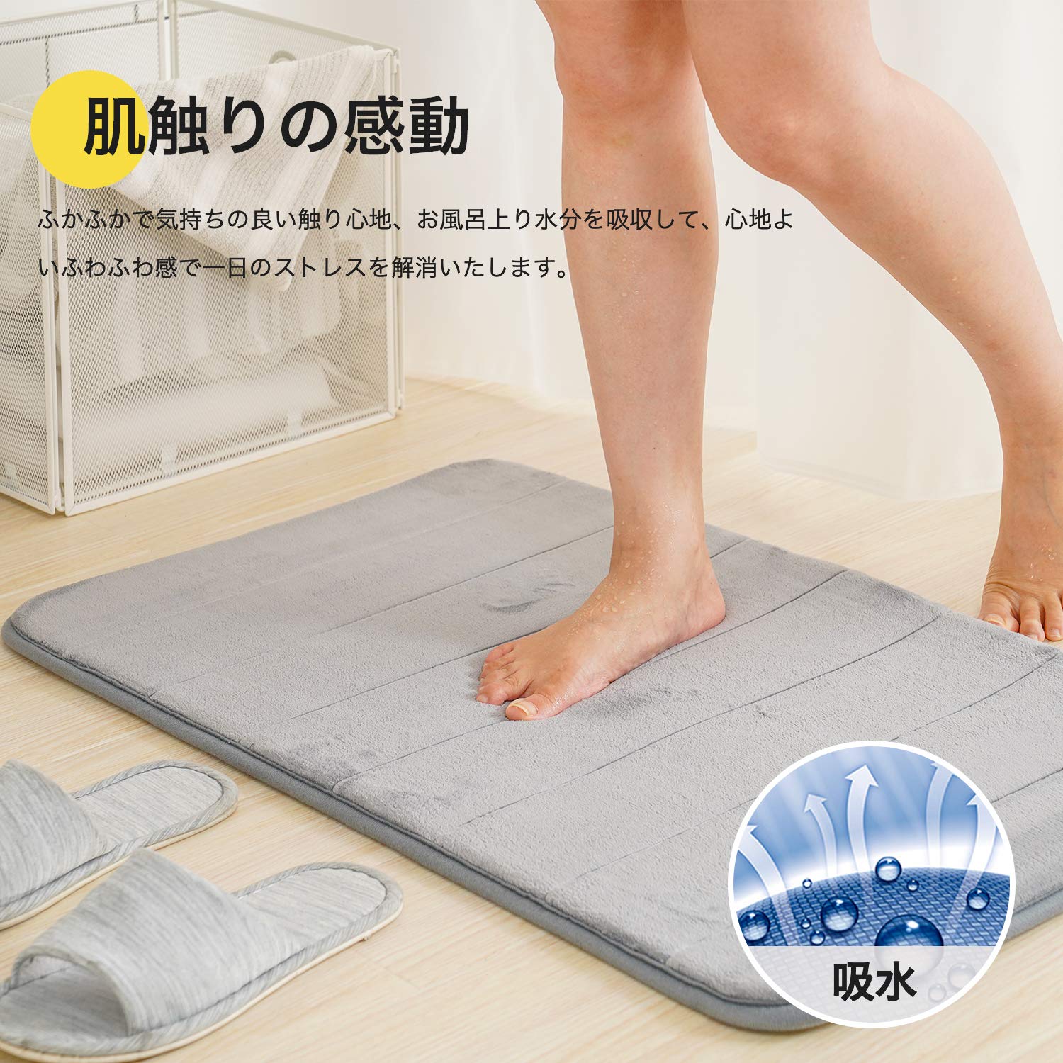 吸水性が高く、濡れた足でマットを踏むと、足の水滴を素早く吸収します。