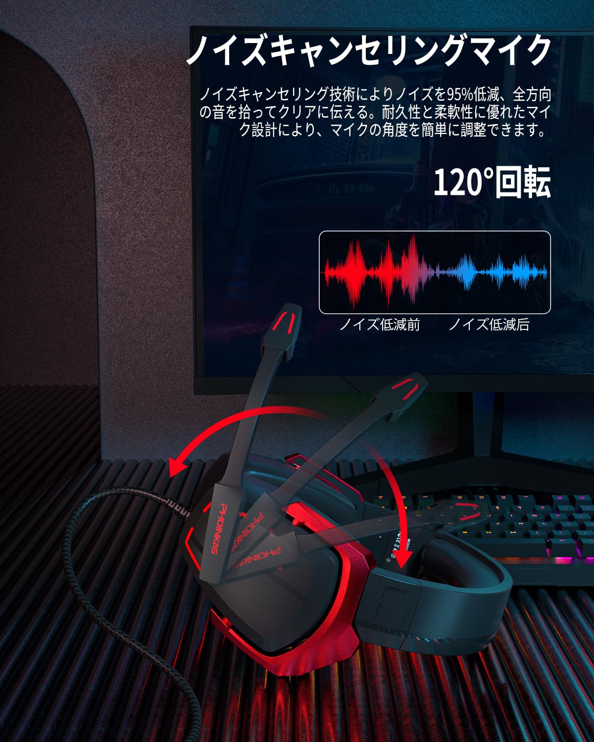 当社のゲーミングヘッドセットは、大型50mmドライバーを搭載しており、クリアな高音と強力な低音を提供し、没入型のサウンド体験を実現します。3Dサラウンドサウンドにより、コンサート会場やお気に入りのゲームの世界にいるような感覚を味わえます。ゲーミングヘッドセットに興味ある方はも現在使用中の方も是非お試してください!
