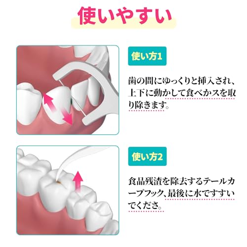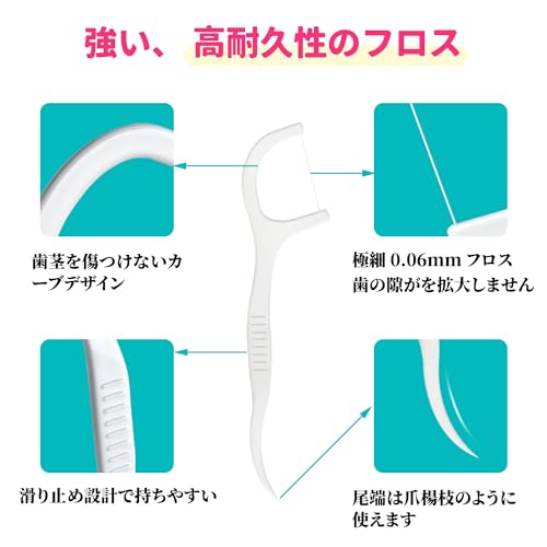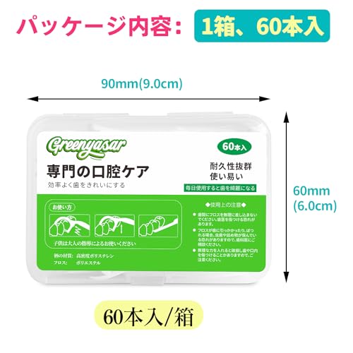 【箱 本入 極細 フロス 歯、狭い 歯間入りやすい デンタルフロス 切れにくい 細いフロス 使いやい いとようじ 】 【フロスの特徴】 ◆細い いとようじ、使いやすい 細いフロスは狭い歯の間にすっと入ります。食事の後には必ずプロスで掃除して、食べカスを効果的に取り除けます。初心者や歯が狭い方にお勧めです。 ◆歯間 フロス 耐久性抜群 フロスは高品質材料で作れた、抜群な耐久性は歯ブラシと同じ、繰り返しで使いも問題無し、歯磨きだけでは磨き残してしまう歯間の歯垢を取り除ます。 ◆歯間清掃の対策 極細 デンタルフロスは丈夫で切れにくいし、歯と歯の間にすっと入ります。細い 糸付きようじ、隙間が狭くても使えて、使用心地がより快適です。 フロス 歯間 は1日に1〜3回使用すると、歯磨きと同じかそれ以上に大事なフロスを簡単に出来ます。 ◆ケースで包装、携帯便利 *デンタルフロスは衛生的なケースに入り、精巧なデザインで家でも車でも各所に置いてあっていつでも使えて便利。 外箱商品サイズ: 90mmx60mmx30mm。糸付きようじはコンパクトなケースに入り、業務や旅行中に持ち運びが簡単。 【商品仕様】 セット内容:60本入/箱、合計60本極細フロスです。 外箱商品サイズ:9 cm*6 cm フロス商品サイズ: 7.5cm*2.15cm 極細 いとようじ 【フロスの使い方】 ①歯の間にゆっくりと挿入され、細かく前後に動かし、食べカスを清掃します。 ②歯の裏側の取りにくい歯垢・食べカスはピックでお取りください。 【ご注意】 ●歯ぐきを傷つけないようにゆっくりと歯と歯の間に挿入してください。 ●お子樣が使用する際には、保護者の方の指導のもとでお使いください。 ●再利用する場合は、洗濯後に乾燥した場所に置いてください、 一度使用することをお勧めします。