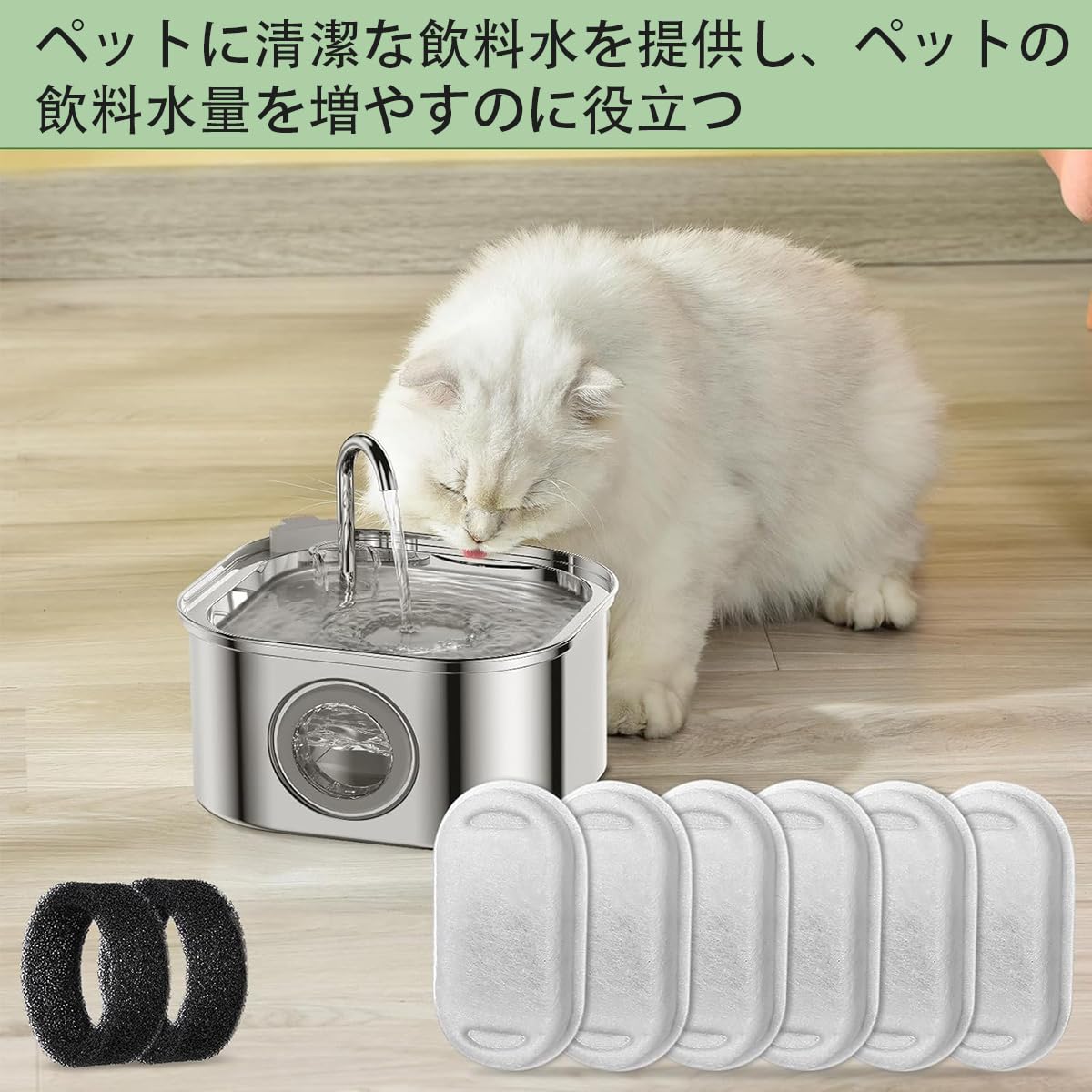 ペット 給水器 フィルター 猫犬用 水飲み器 フィルター 3.2L ペット自動給水器に適用 交換用スポンジ付き*4 活性炭フィルター*8 取り換え可能 交換用フィルター