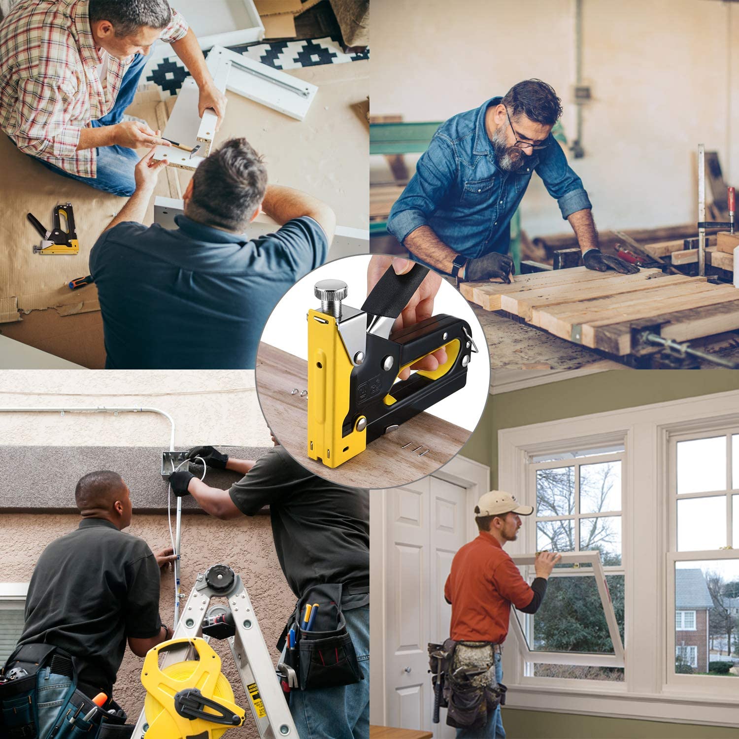 Kohree ガンタッカー 3in1 強力型 ハンドタッカー ステープルガン 高耐久、人間工学 3000本替針 リムーバー付き 木工用 装飾 家具 内装 固定 壁紙・革シート補修/木材裏止めに対応 日本語取扱説明書付き