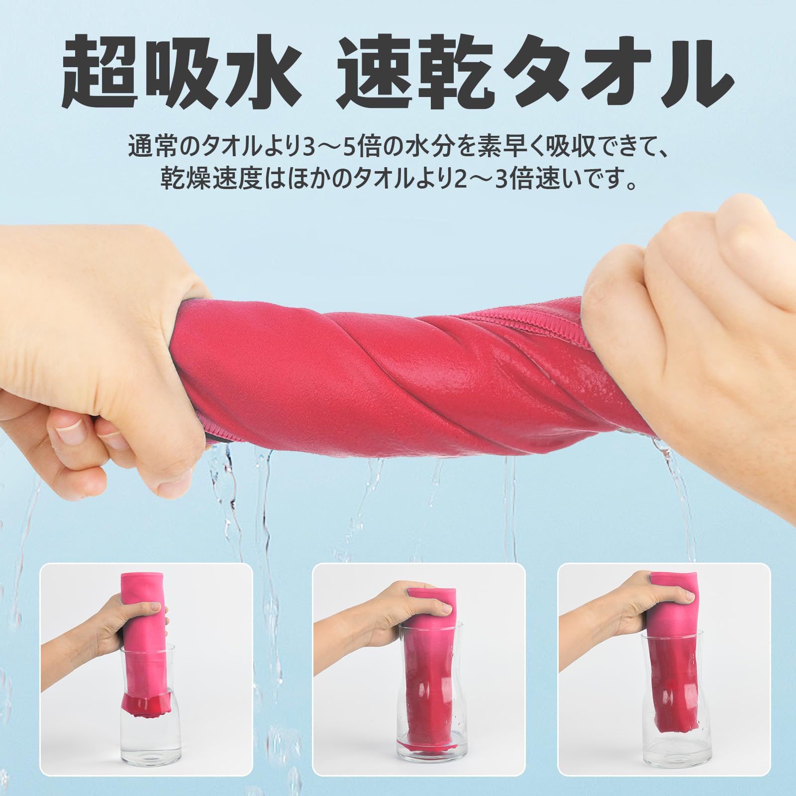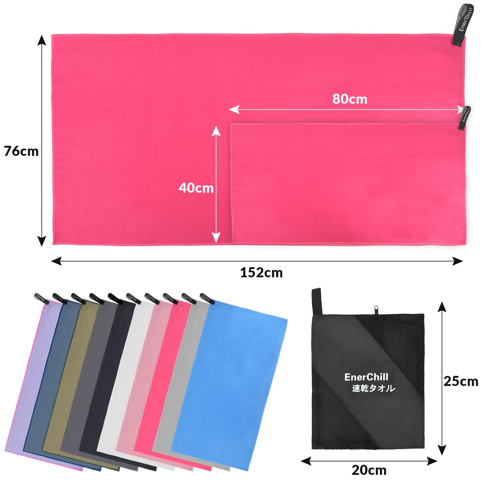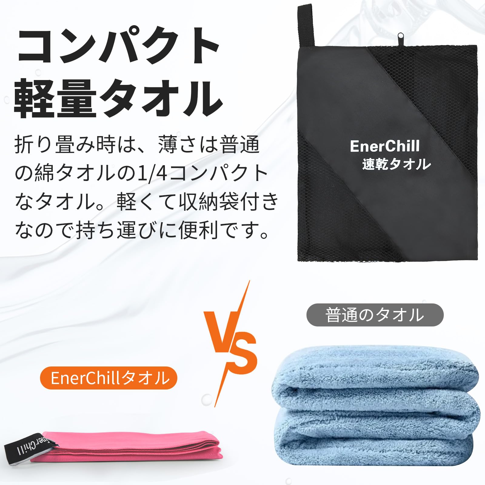 EnerChill スポーツ速乾タオル マイクロファイバー 超吸水 そっかん コンパクト 軽量 防晒 紫外線対策 防臭 耐久 汗拭き 柔らかい ループ 収納袋付きタオル スイム 水泳 スイミング バス ビーチ プール 旅行 出張 登山 运动 ヨガ サウナ 温泉 銭湯 ジム ジョギング アウトドア 髪の毛 ヘアドライタオル 2サイズ