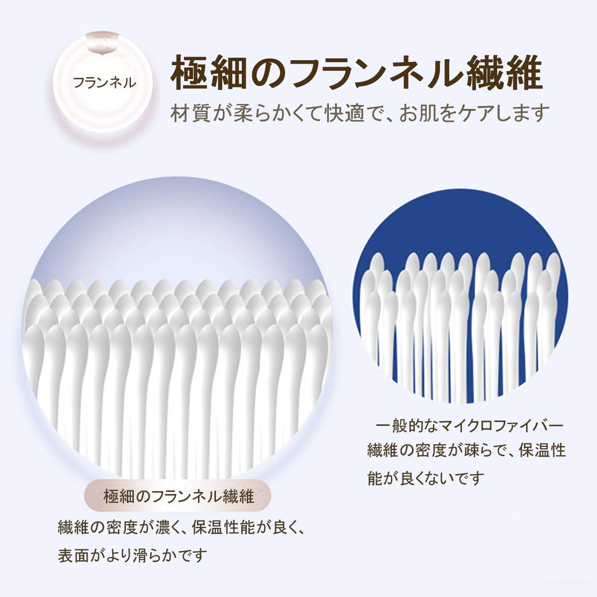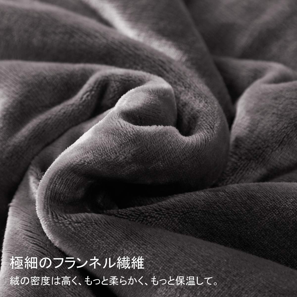 表面はうっとりするようななめらかなフランネル素材です。ふんわりやわらかく、しっとりとした肌触りに癒され、心も体も温まります。つややかな光沢も高級感を演出してくれます。