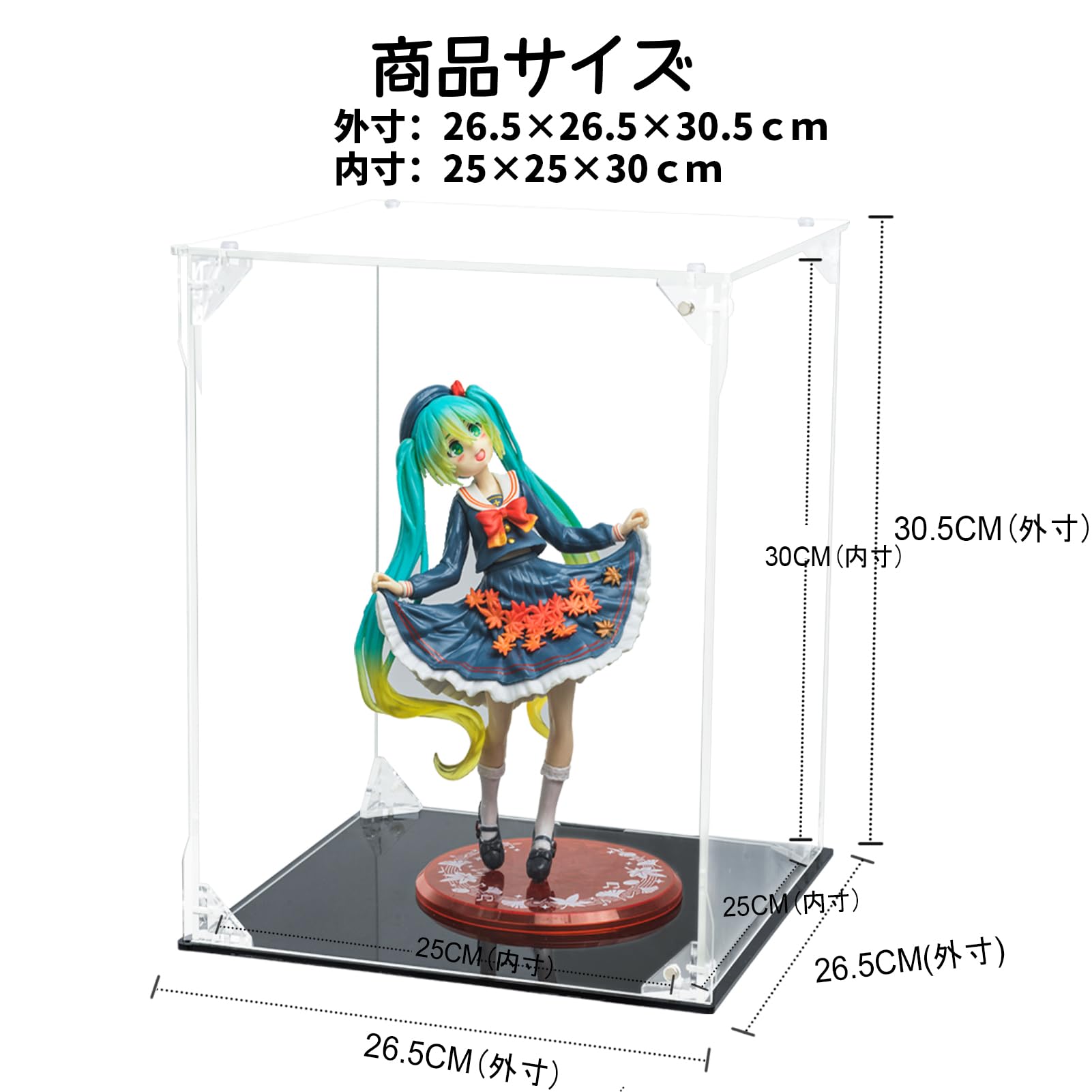 EOMMOE フィギュアケース【マグネット扉仕様】【UVカット】コレクション ディスプレイケース アクリル ボックス コレクションケース 台座黒 幅25×奥行25×高さ30cm