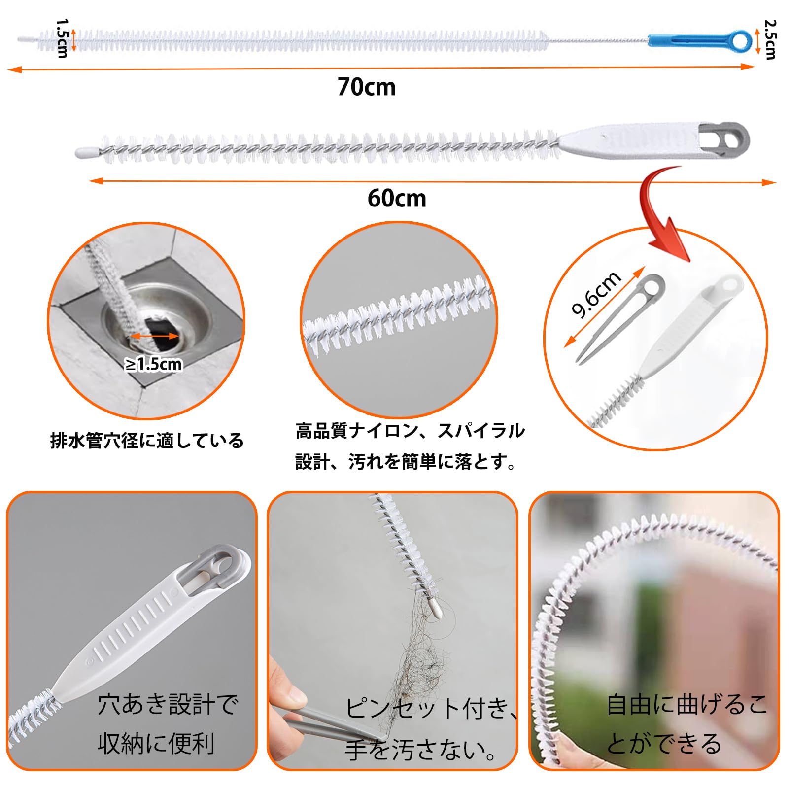 【幅広い用途】当社の実用的なパイプクリーナーセットは、詰まりの掴み、髪の毛の清浄、パイプの日常掃除などの機能をカバーしています。お風呂、トイレ、キッチンのシンク、洗面台、バスタブ、シャワーの排水管の掃除やその他の入り込みにくい場所の掃除に広く使用されています。