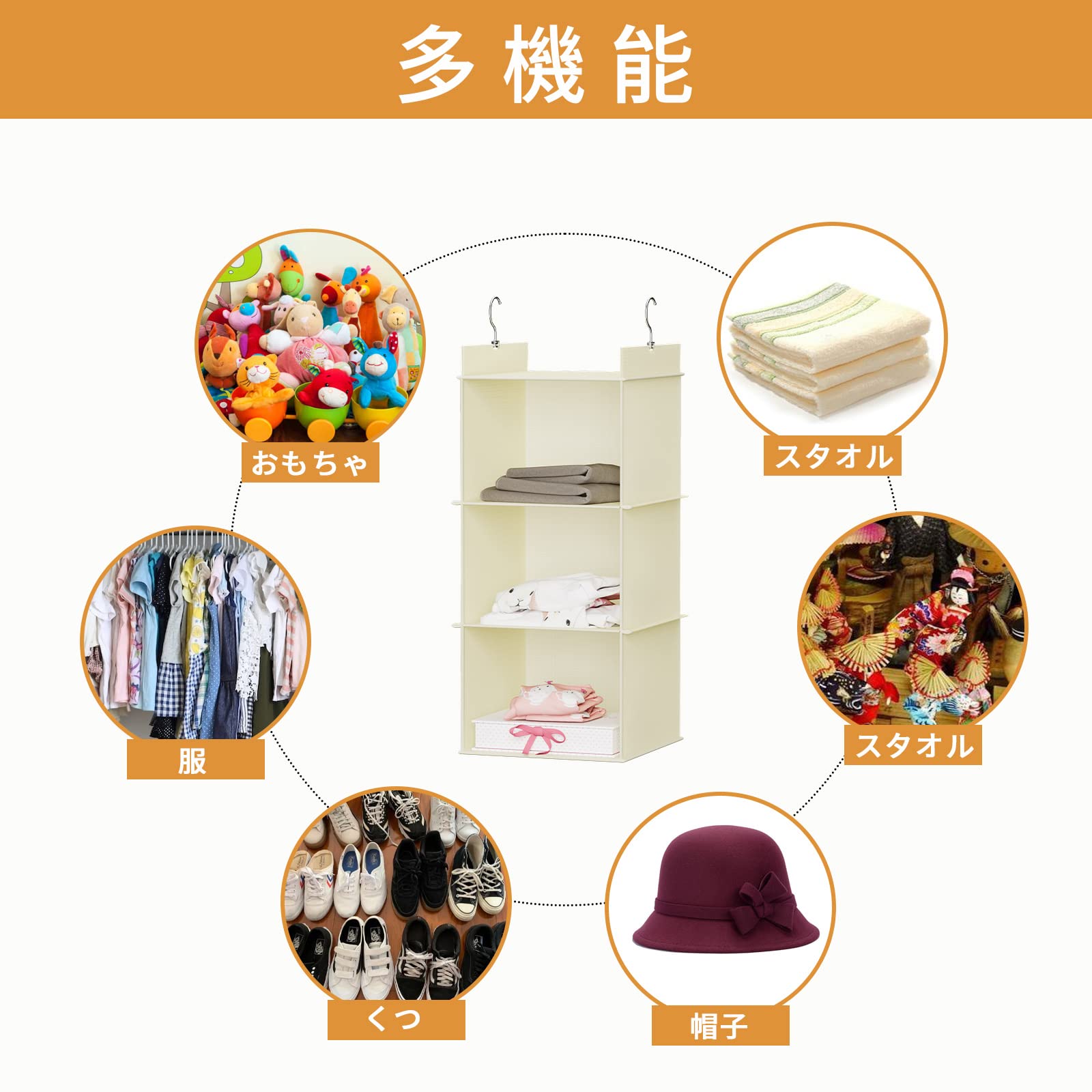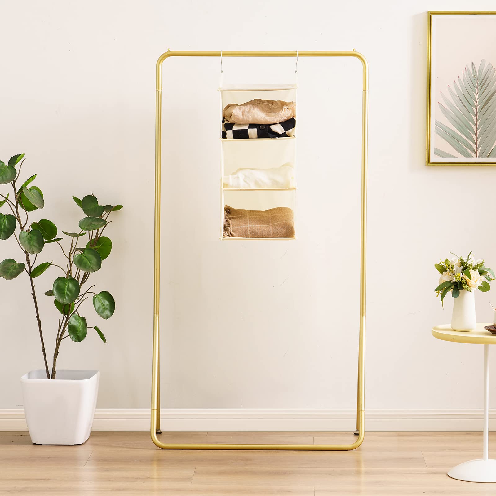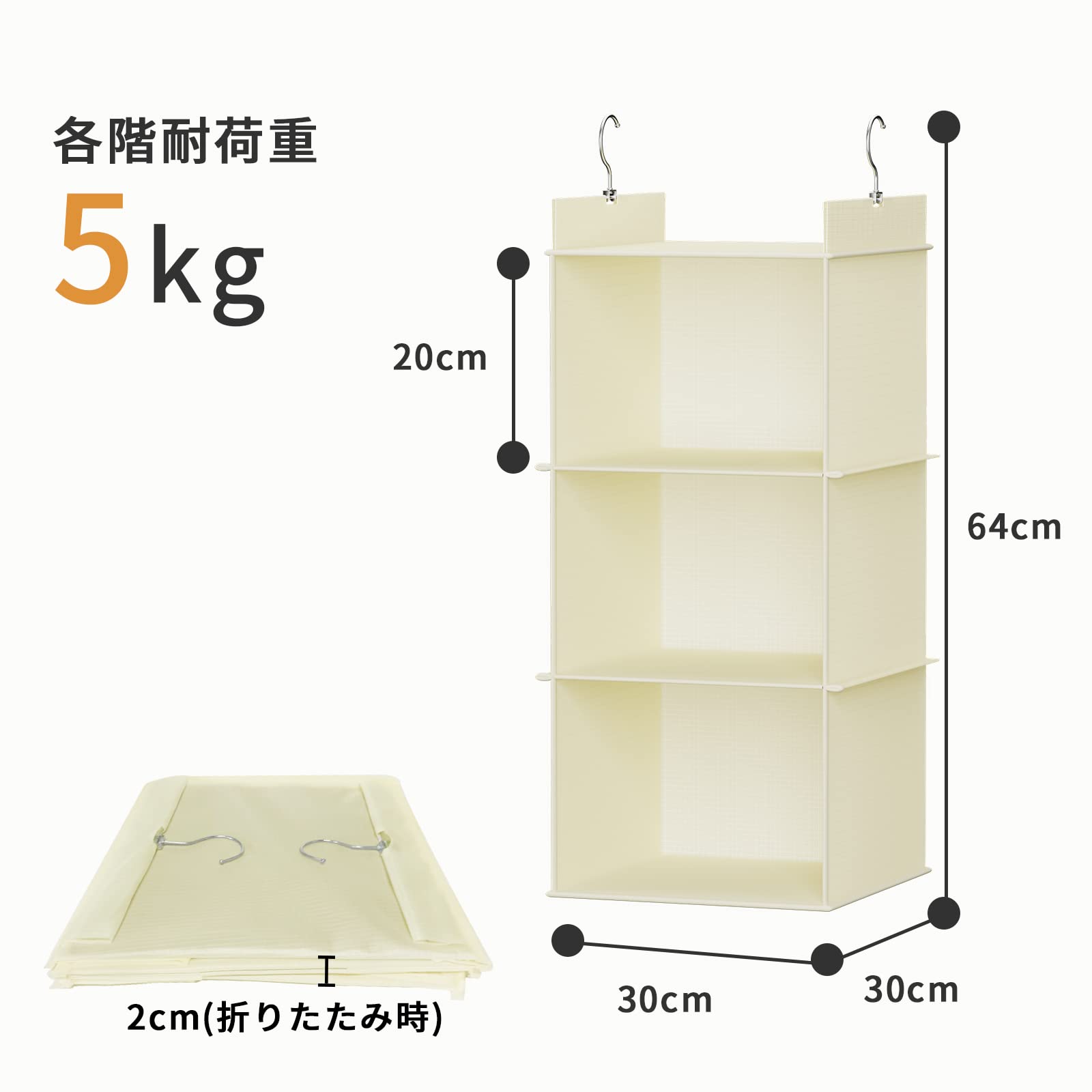 YOUDENOVA 吊り下げ収納 衣類ラック 折りたたみ クロゼット 吊るす収納 ぬいぐるみ、洋服、タオルに適用 ハンガーラック 省スペース (ベージュ、3段)