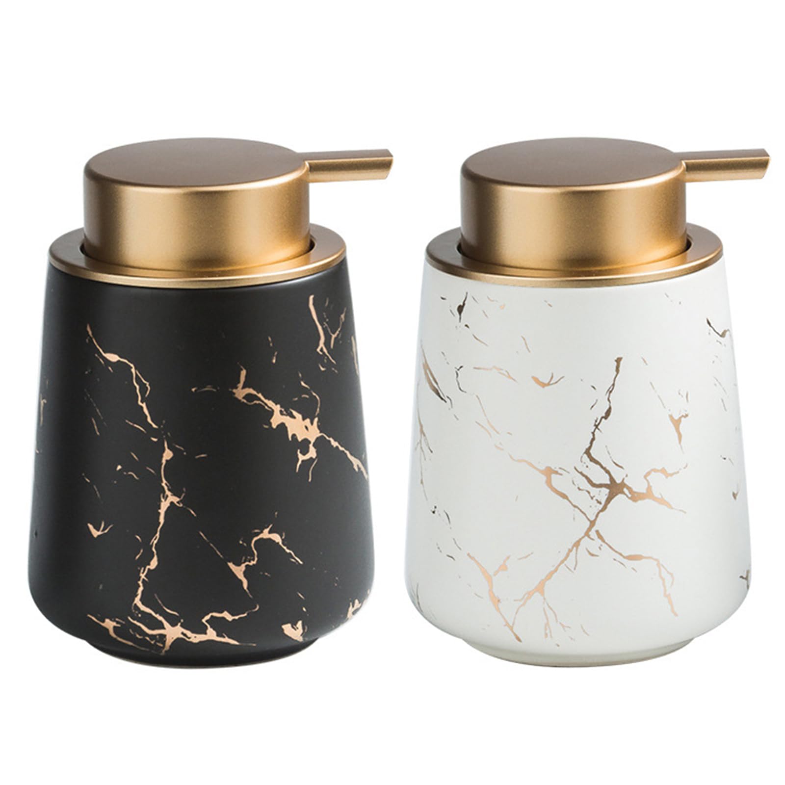 陶器製の泡ソープディスペンサーです。 陶器製の本体はどこか温かみがあり、プッシュ部分のゴールド色もさり気ない高級感をプラスし、お部屋にユニークで高級感のあるオシャレな雰囲気を演出してくれます。