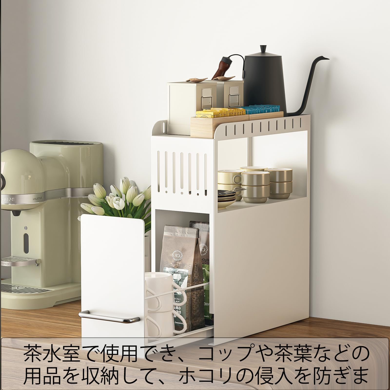 引き出しタイプで、オイルボトルも保管できます。調味料の瓶とかにホコリや油汚れを防止します。