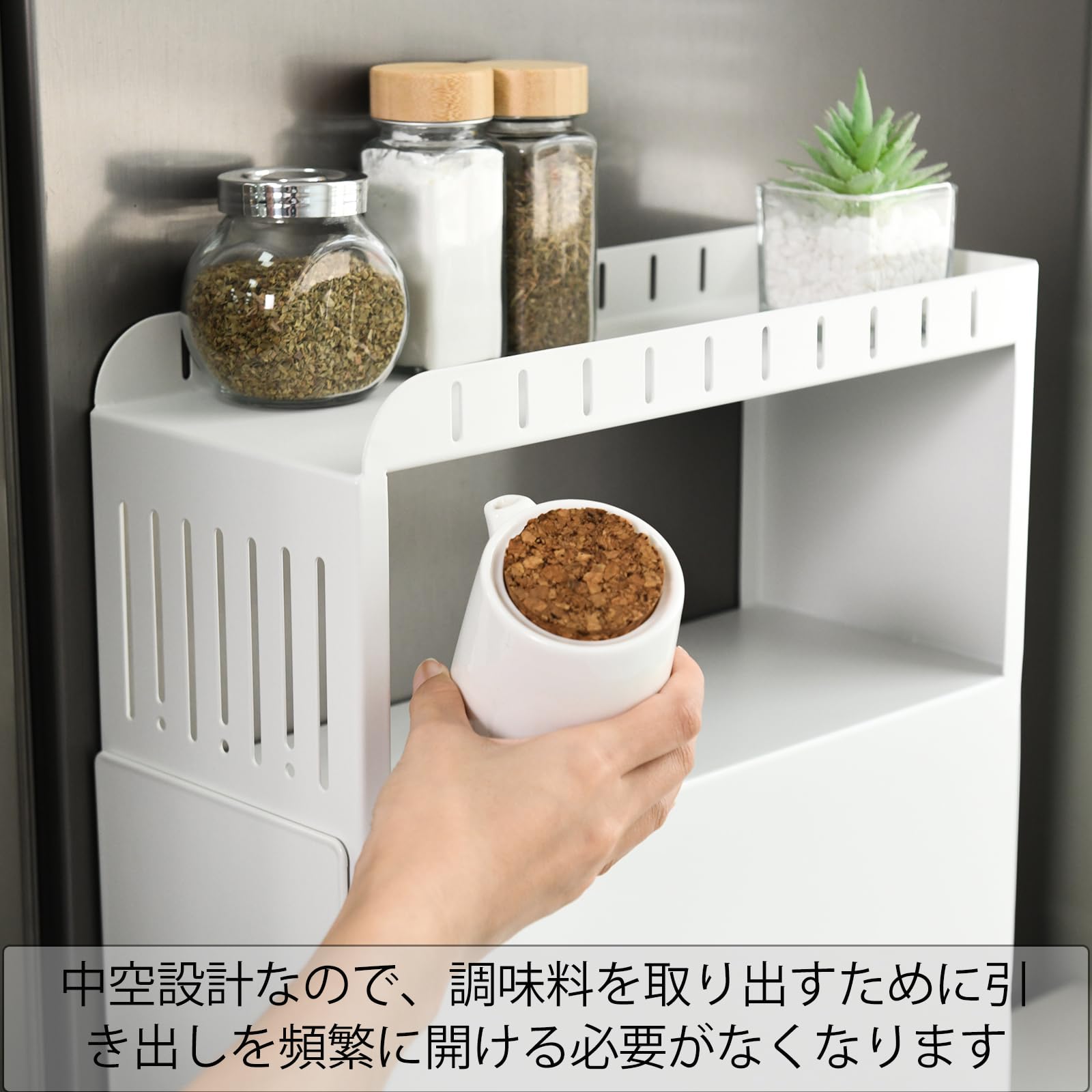 滑らかな本体はすっと拭いてきれいになります。最上層のラクに調味料を置くことをお勧めします。