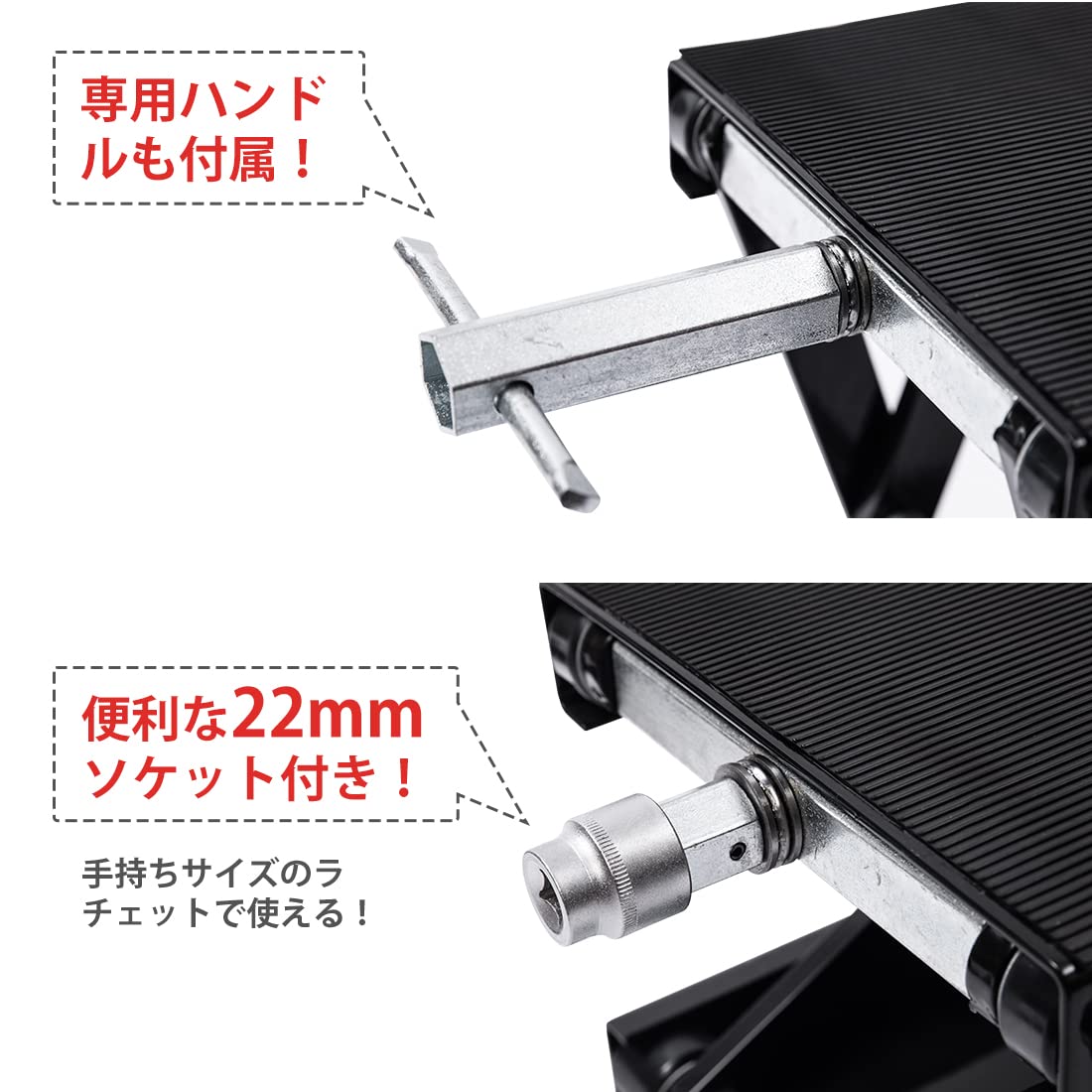 3.ハンドルを時計回り方向にゆっくり回して、必要な高さにアップしてください。