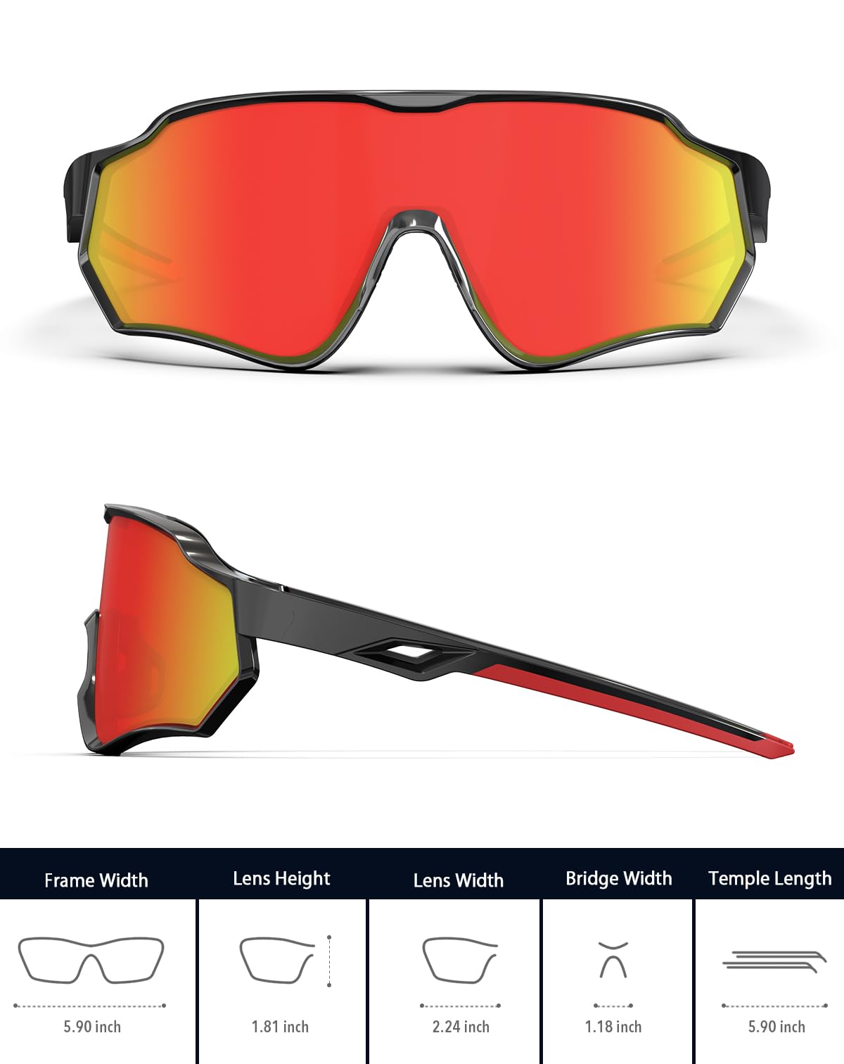 [Odoland] 偏光スポーツサングラス 交換レンズ、ケース付き UV400 紫外線カット スポーツメガネ メンズ レディース 釣り/ゴルフ/野球/自転車/登山/運転用
