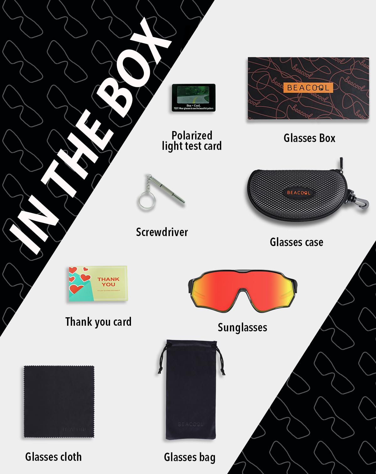 [BEACOOL] スポーツサングラス 偏光レンズ 自転車 登山 釣り 野球 ゴルフ ランニング ドライブ バイク テニス スキー 超軽量 UV400 TAC TR90 紫外線防止 メンズ レディース ユニセックス サングラス 安全 清晰