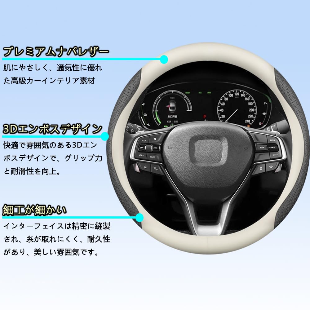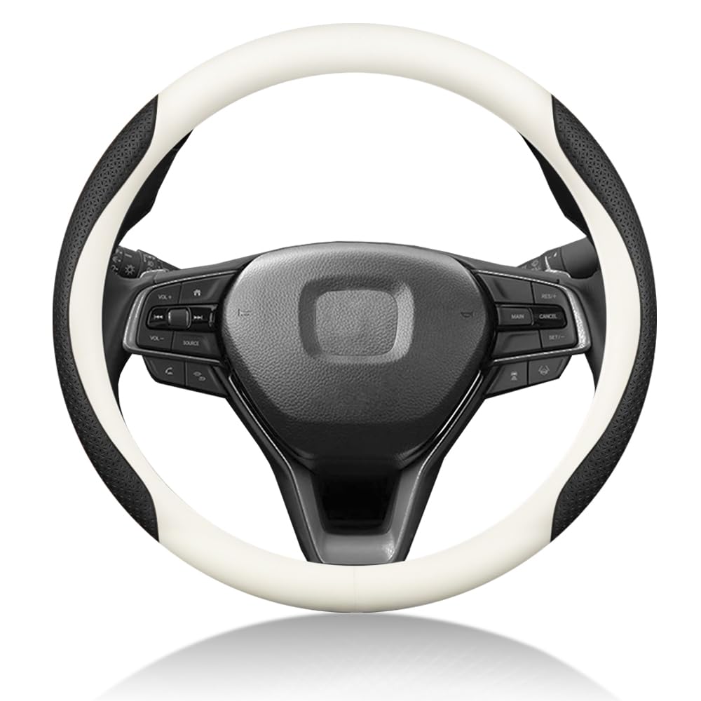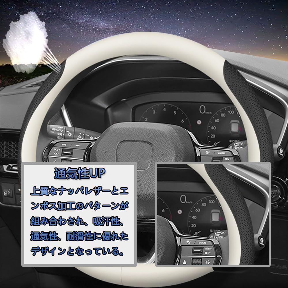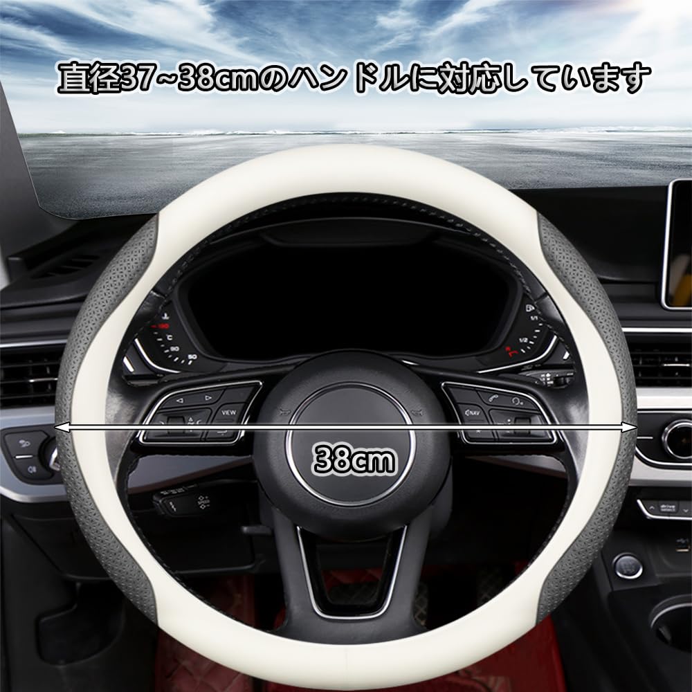EIING ハンドルカバー 車用 軽自動車 sサイズ 3Dエンボスパターン 滑り止め ステアリングカバー 本革 汎用 おしゃれ 通気性がよい 取付簡単 普通車 ハンドル 保護カバー 高級 内装パーツ 車用品 アクセサリー オールシーズン対応 円形 37~38CM (ホワイト+ブラック A)