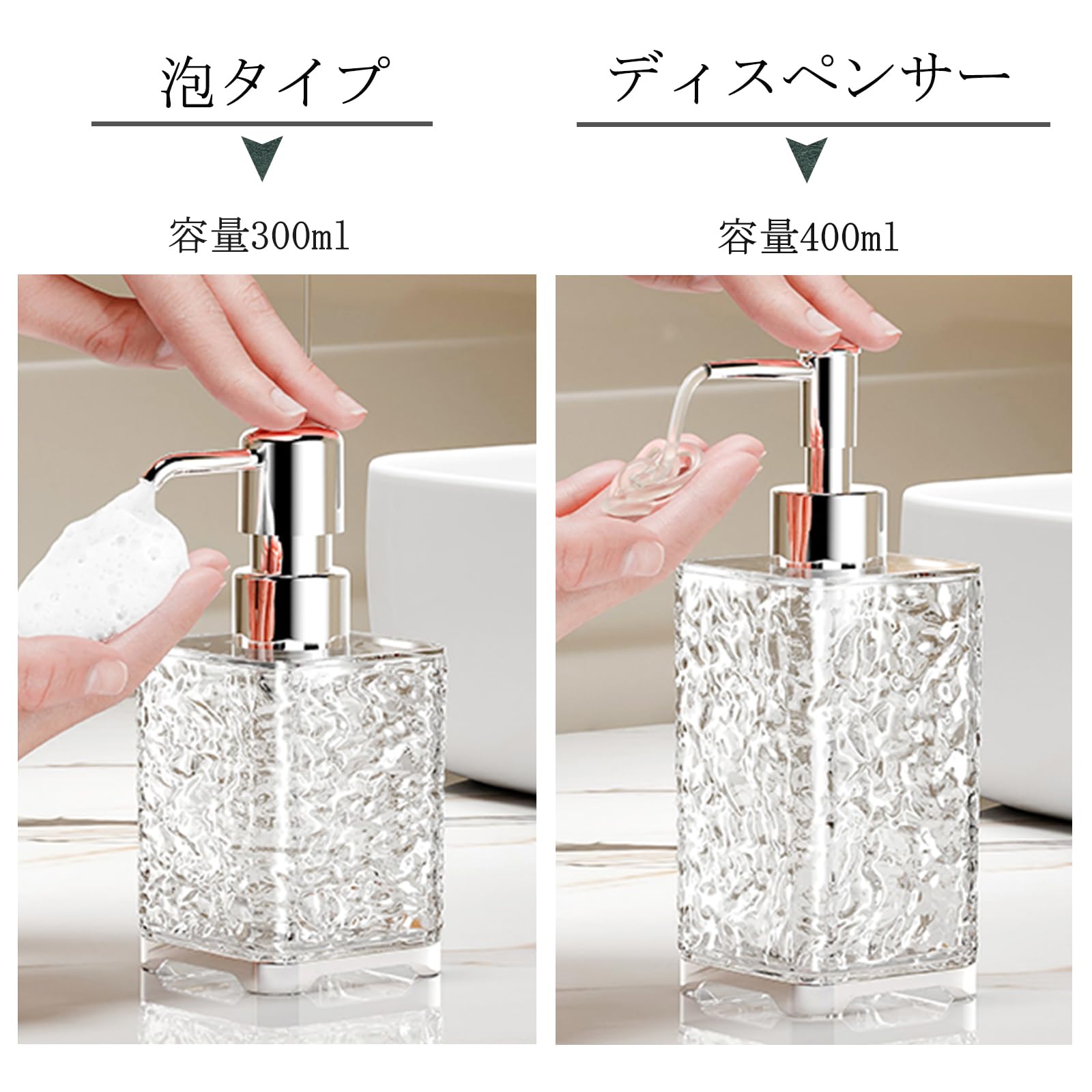 ELECTRO-WEIDEWORLD シャンプーボトル 400ml 2個セット 詰め替えボトル 中身見える ソープボトル ソープディスペンサー ハンドソープ 容器 丸形 お風呂 透明 クリアカラー おしゃれ 高級 (液体タイプ, 400ml四角)