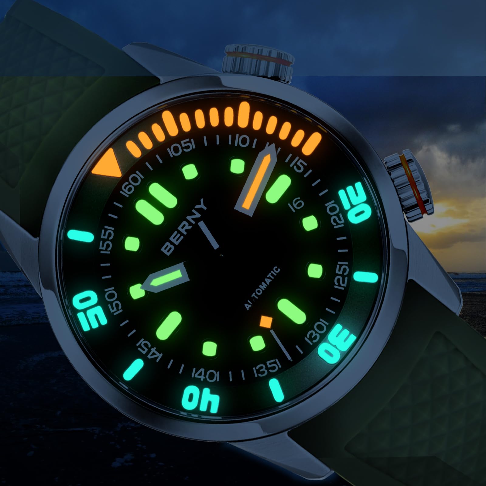 この時計には超蓄光素材を使用しております。実験データによると、紫外線に10分間照射すると、8〜10時間発光し続けます(最初の4時間は発光効果が強く、その後徐々に暗くなります)。太陽光下での発光時間は、UVライトを使用した場合よりも短くなります。最良の結果を得るには、UVライトの使用をお勧めいたします。日光への照射は次善策となり、室内照明は紫外線がほとんどないため効果が低く、推 奨いたしません。