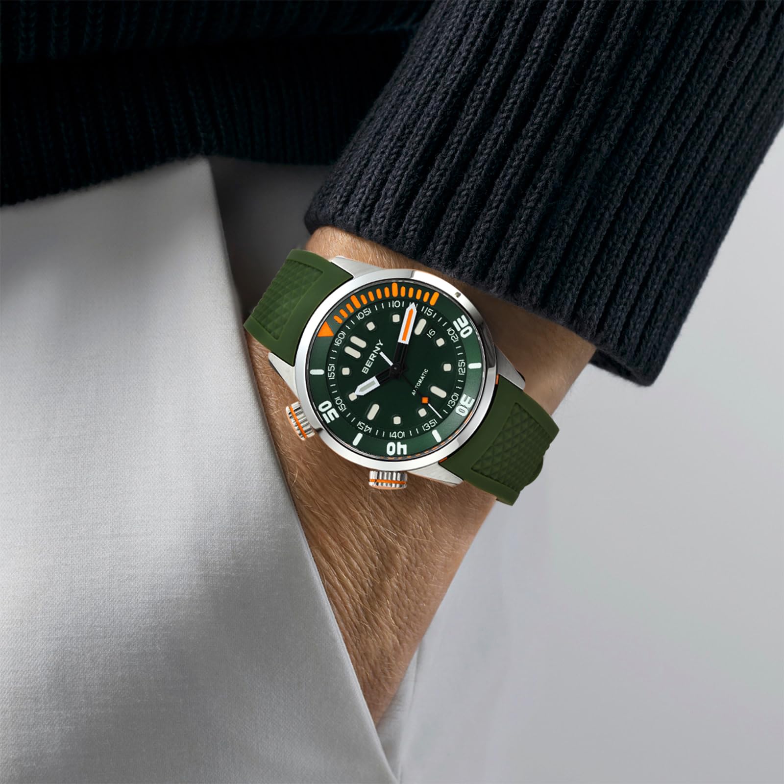 弊社の時計は日本製ムーブメントMIYOTA 8512を使用しており、平均日差は±20秒です。時計が停止した場合は、動力不足が原因である可能性があります。本製品は、自動巻きと手巻きの両方に対応しております。 自動巻き:必要なエネルギーを確保するために、時計を1日6~8時間着用してください。 手巻き:巻き上げ中に抵抗を感じたら、時計に十分な電力が蓄えられています。完 全に巻き上げた時計は約36時間の稼働時間を維持できます。