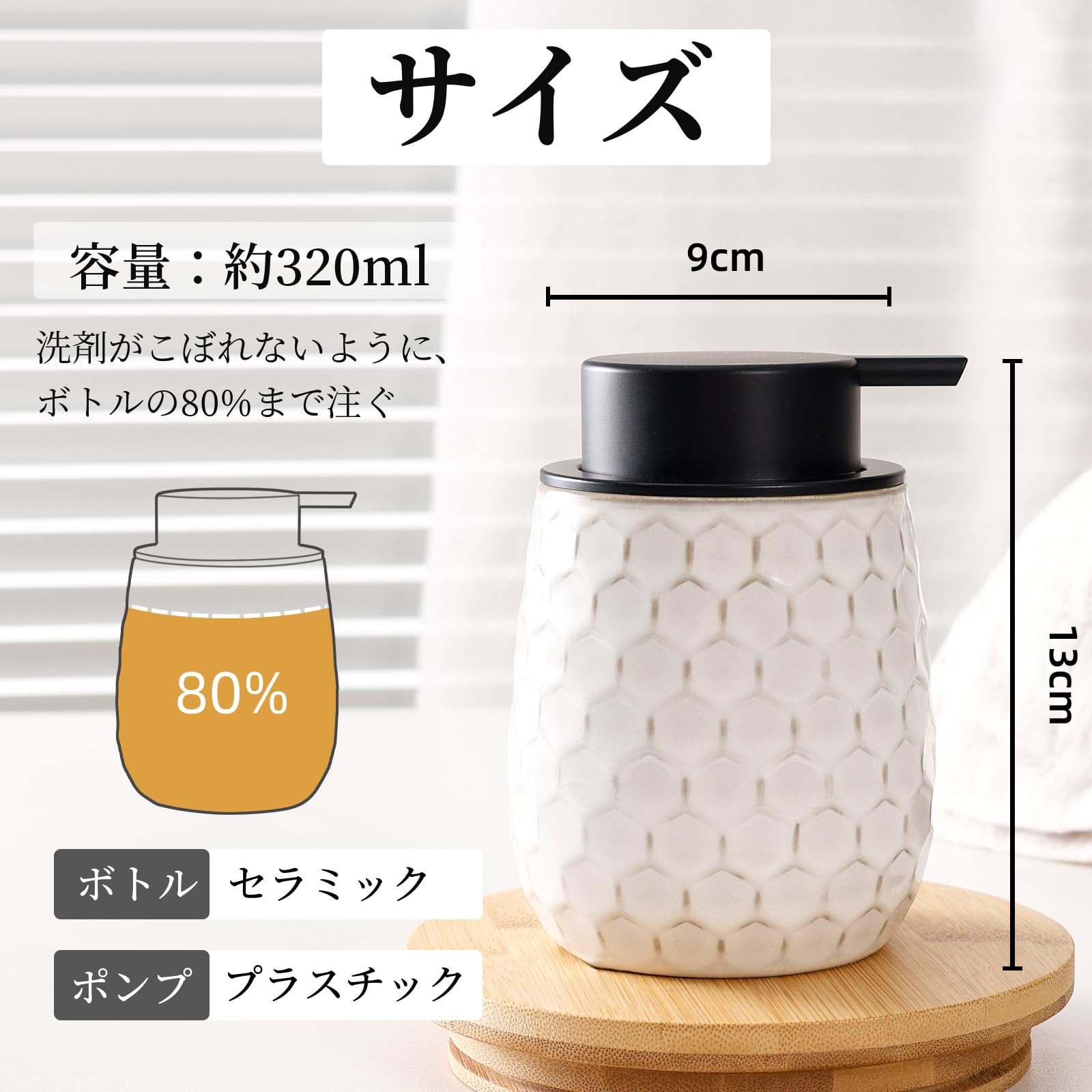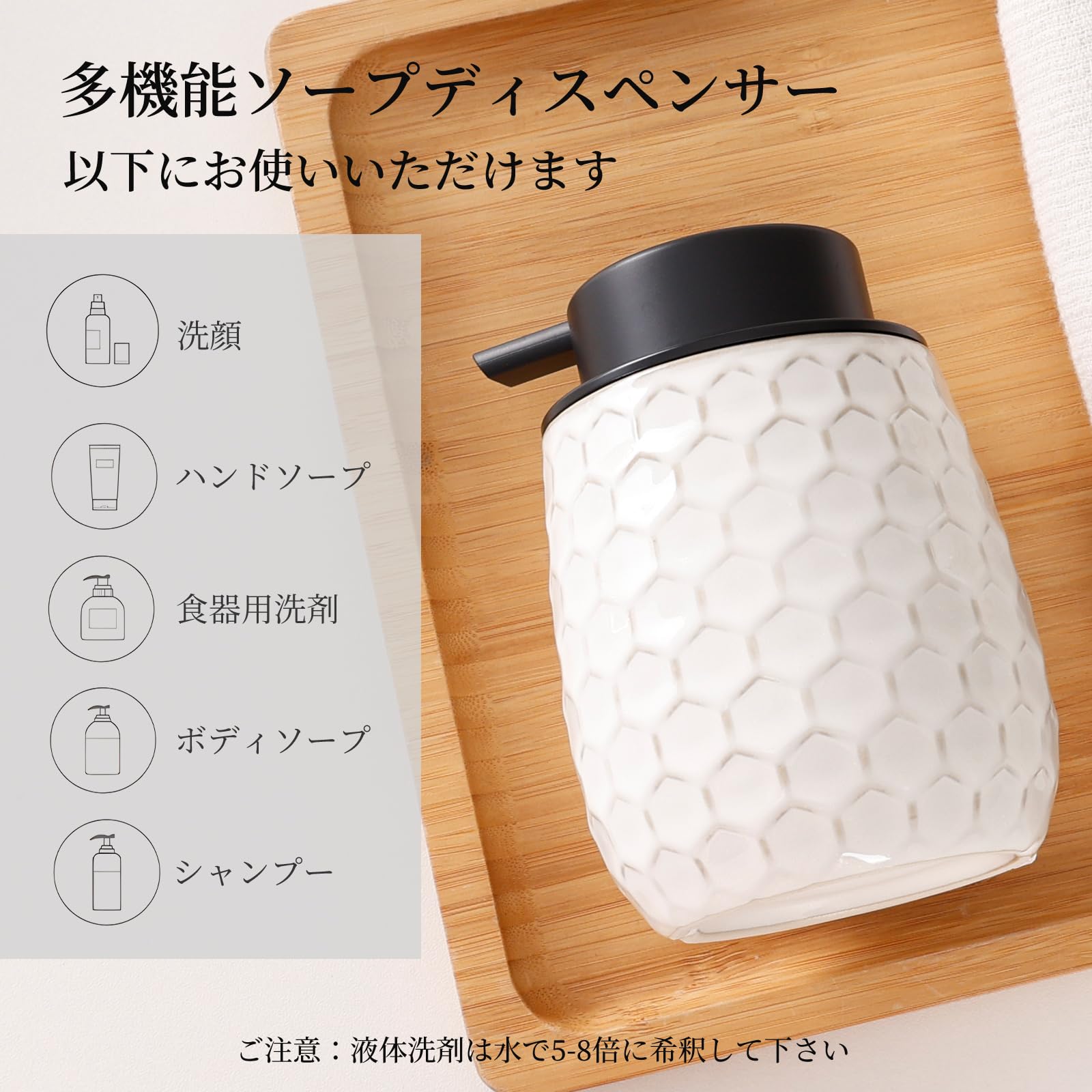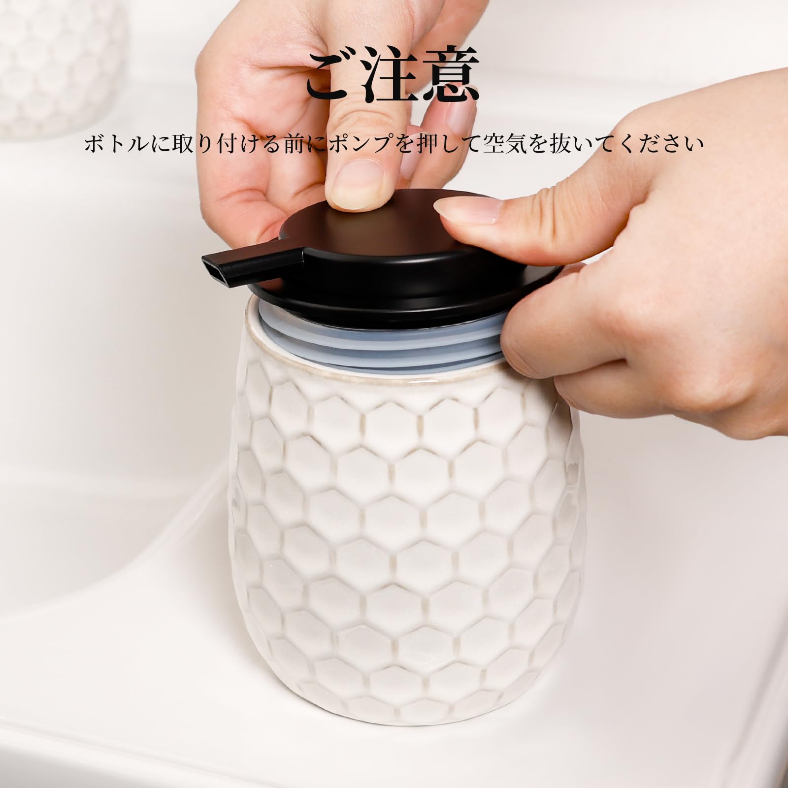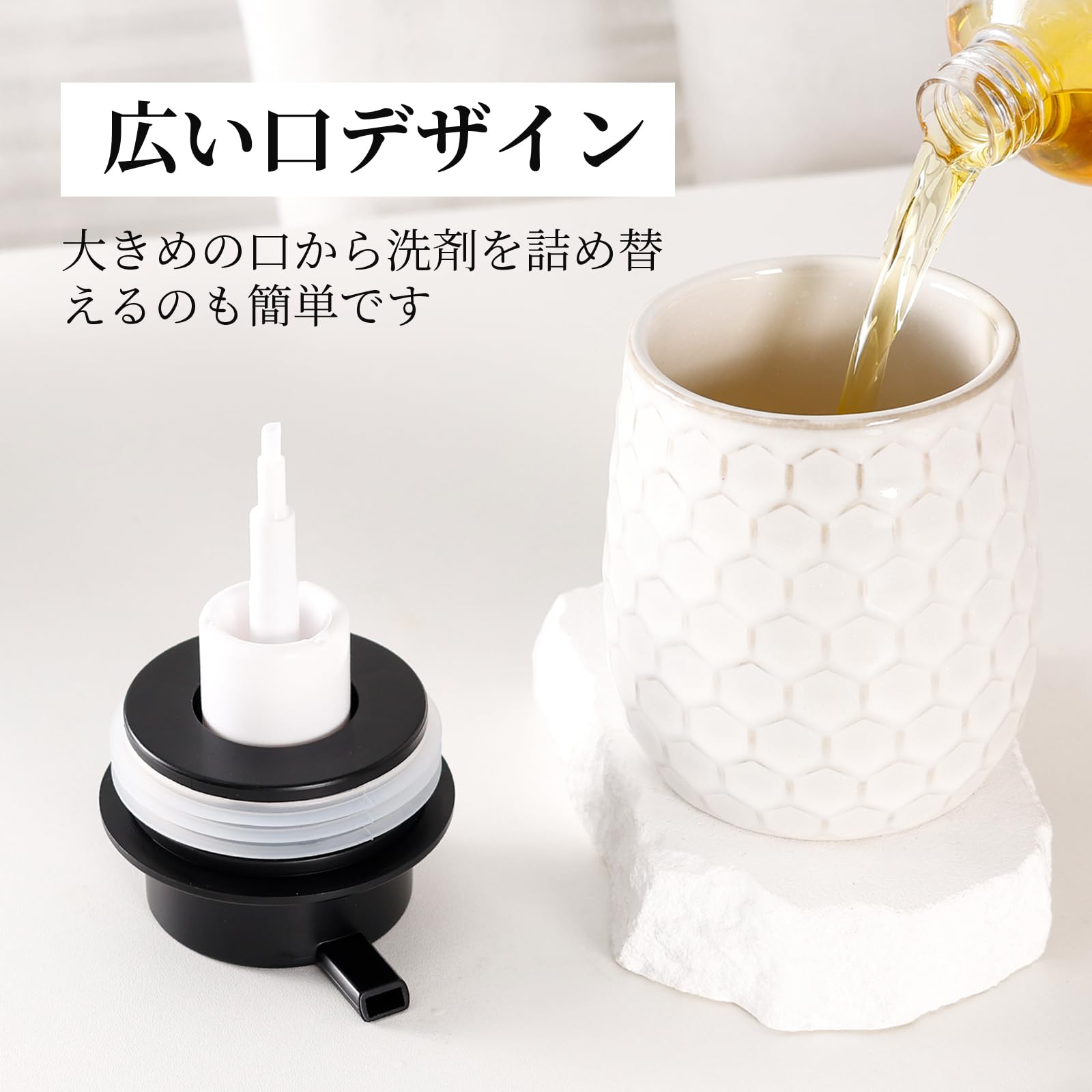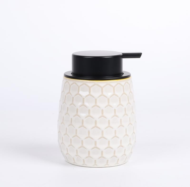 Umlaca ソープディスペンサー 泡 陶器 ハンドソープ ディスペンサー 手動 ハニカム型 詰め替え容器 押しタイプ おしゃれ 広口 北欧スタイル 食器洗剤ボトル キッチン 洗面所 バスルーム お風呂場などに適用