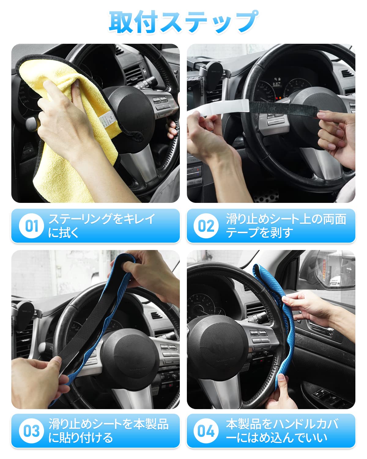 Cartist ハンドルカバー 車用 ステアリングカバー 汎用 軽自動車 普通車 おしゃれ 汚れ防止 滑り防止 オールシーズン対応 ハンドル 保護カバー カスタム 内装パーツ アクセサリー 2ピースセット 取付簡単 メーカー直営 (ブラック)