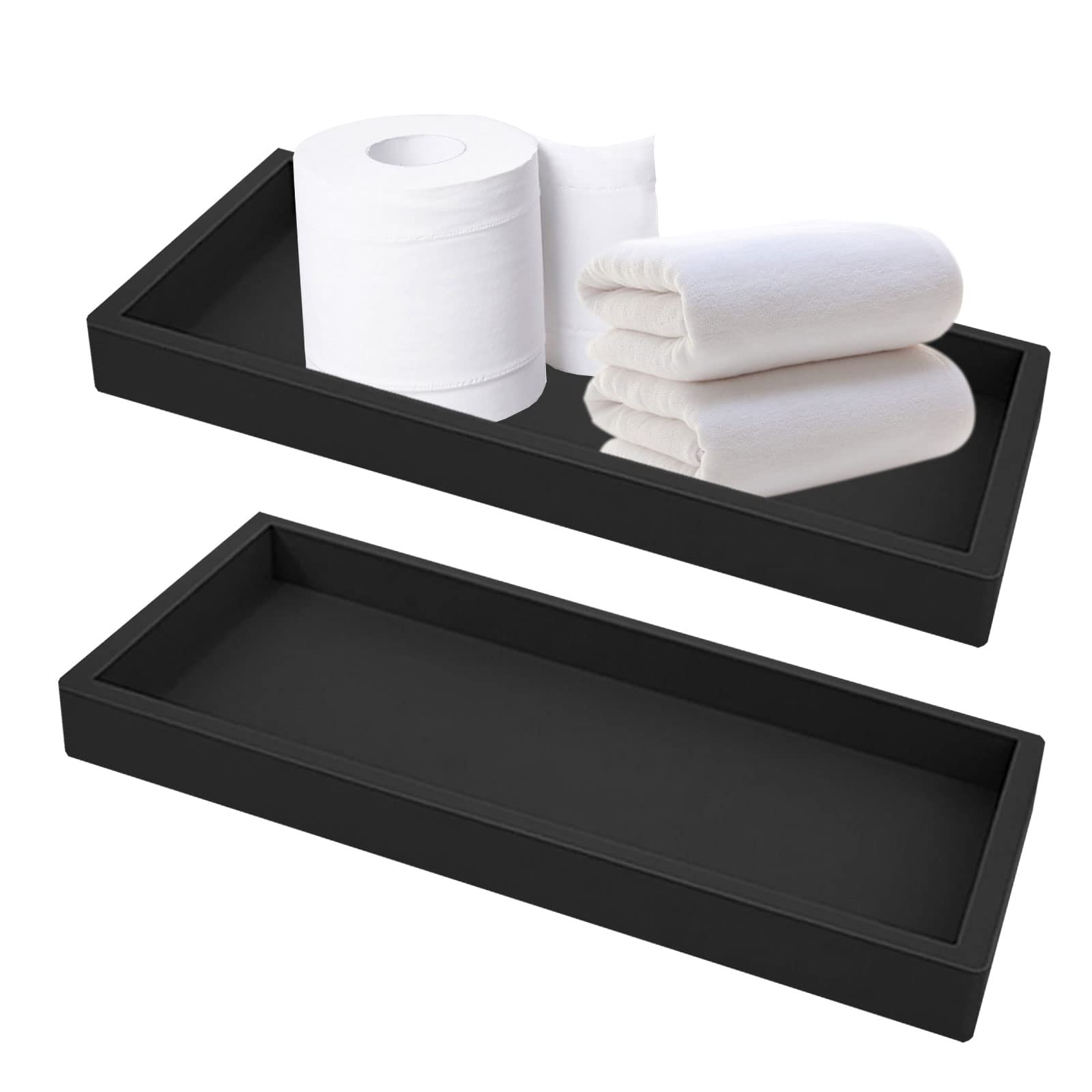 2個入り バスタブトレー トイレタンクトレイ 小物トレイ 化粧台トレイ 洗面台トレイ 装飾トレイ メイクアップオーガナ 香水ソープディスペンサー ドレッサー/洗面台/バスルームカウンター/コーヒーテーブル/デスク/トイレタンク用 (ブラック, 7.87