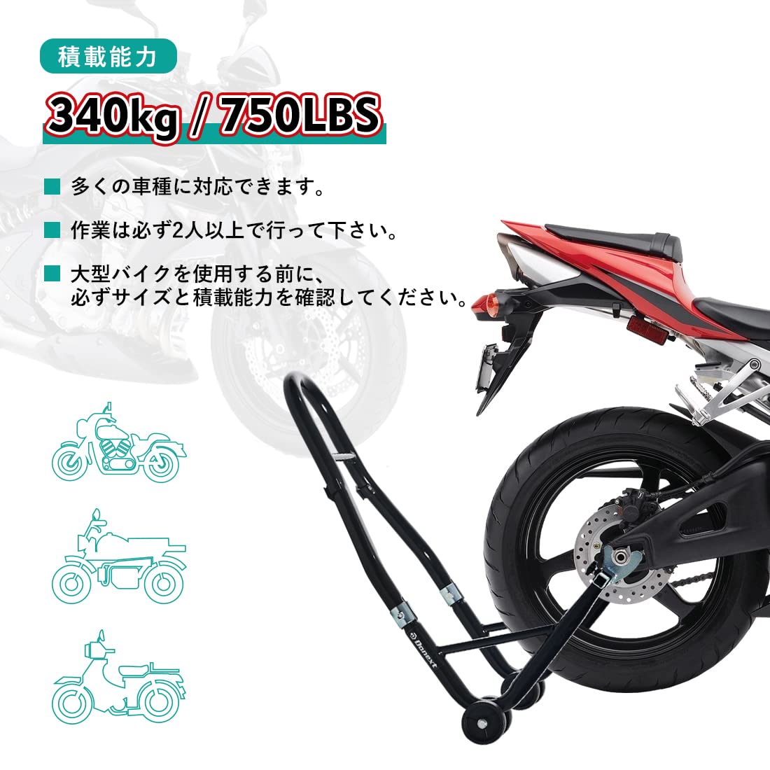 Donext バイクスタンド リア メンテナンススタンド 後輪用 整備用 耐荷重340kg 750LBS キャスター付き U型 ブラック