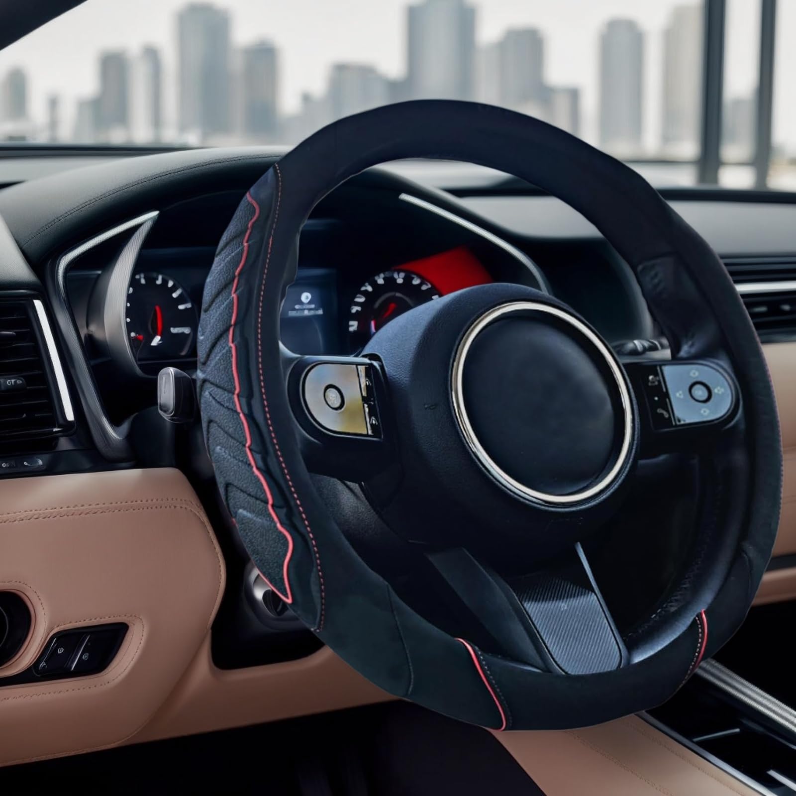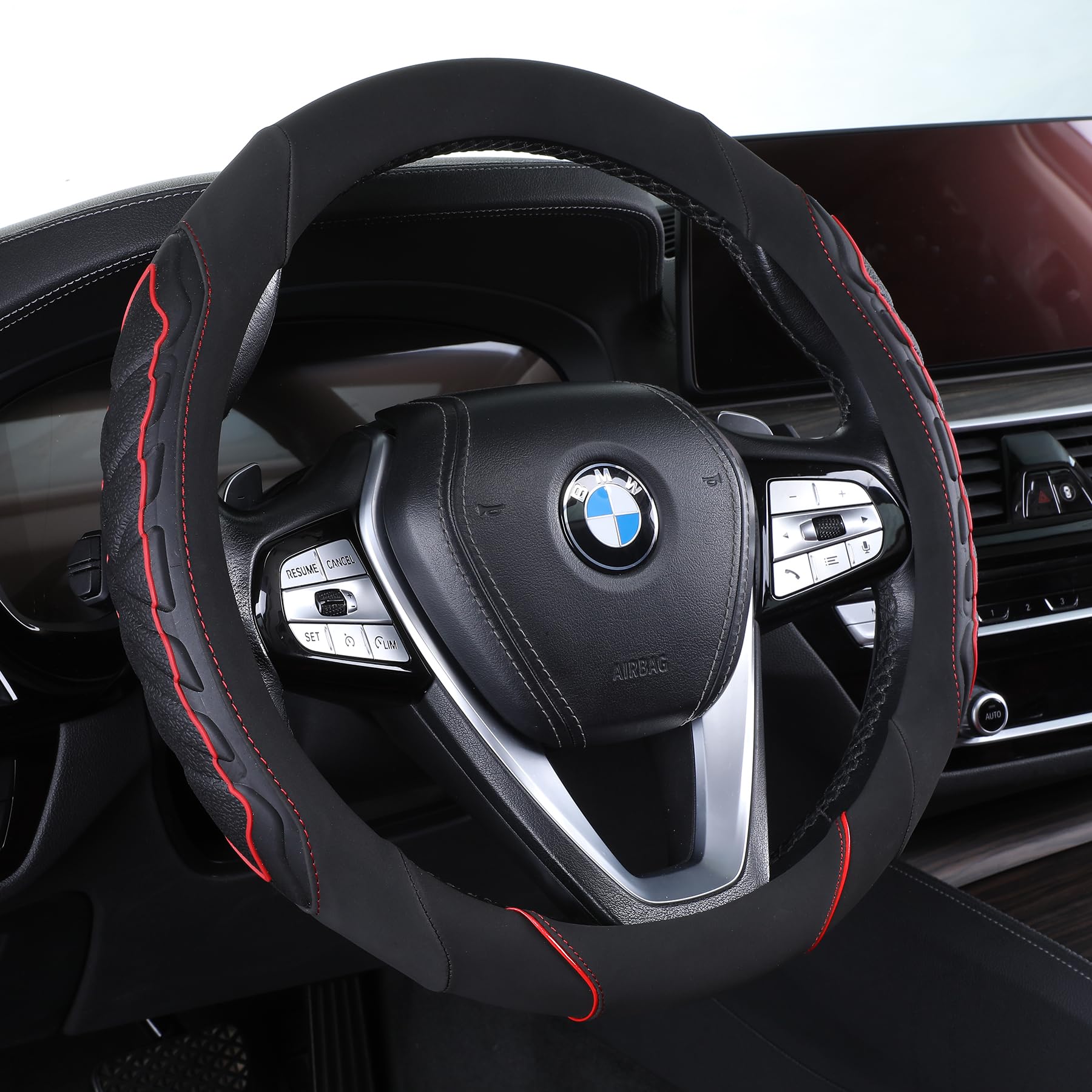 EIING ハンドルカバー 車用 軽自動車 sサイズ 3Dグリップ 滑り止め ステアリングカバー 汎用 おしゃれ 通気性がよい 普通車 ハンドル 保護カバー 高級 内装パーツ 車用品 アクセサリー オールシーズン対応 円形 37~38CM (レッド)
