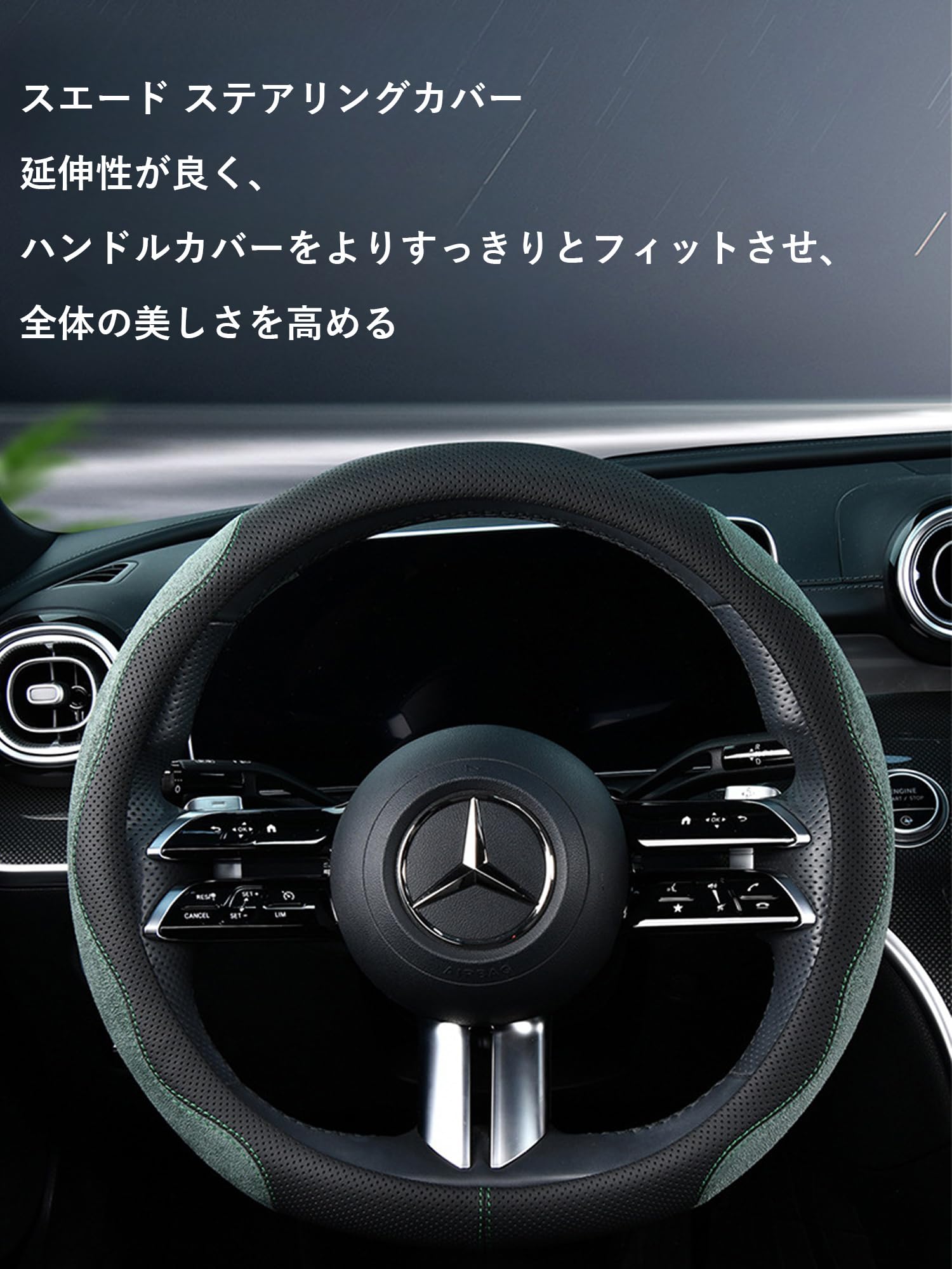 ハンドルカバーはスタイリッシュなデザインと機能性を両立。スエード素材とレザーを併用し、高級感と通気性の高さを実現。ハンドルを握る部分はメッシュ素材を使用しているため、より柔らかい触り心地が得られます。