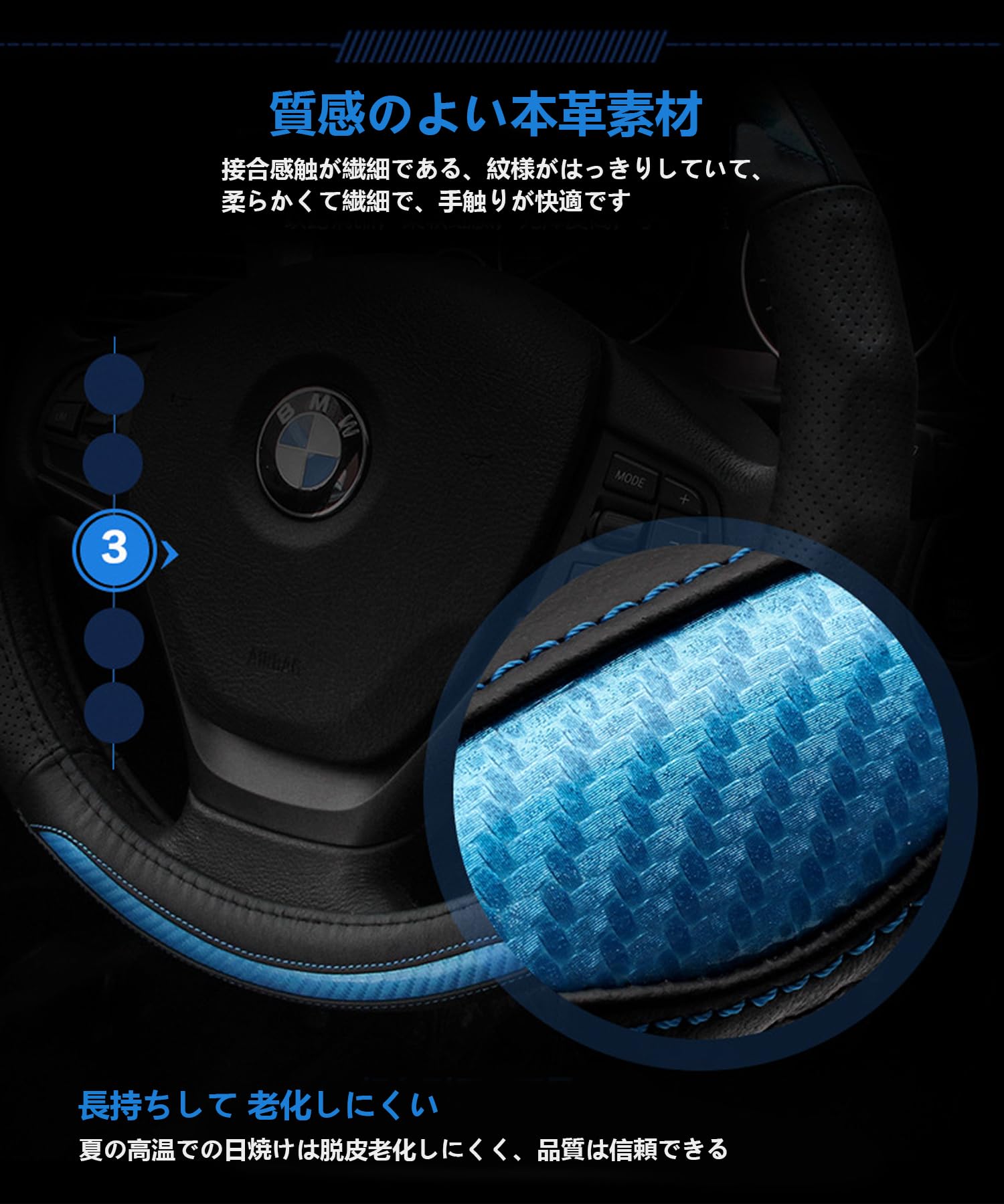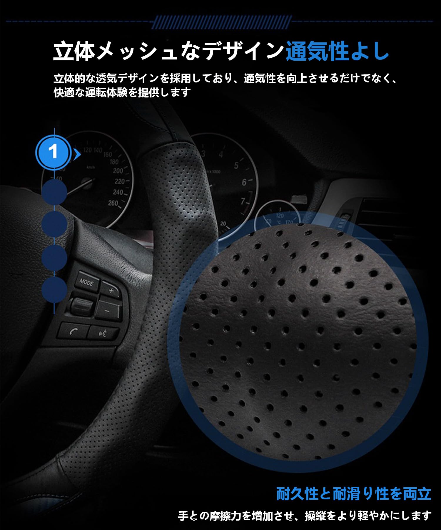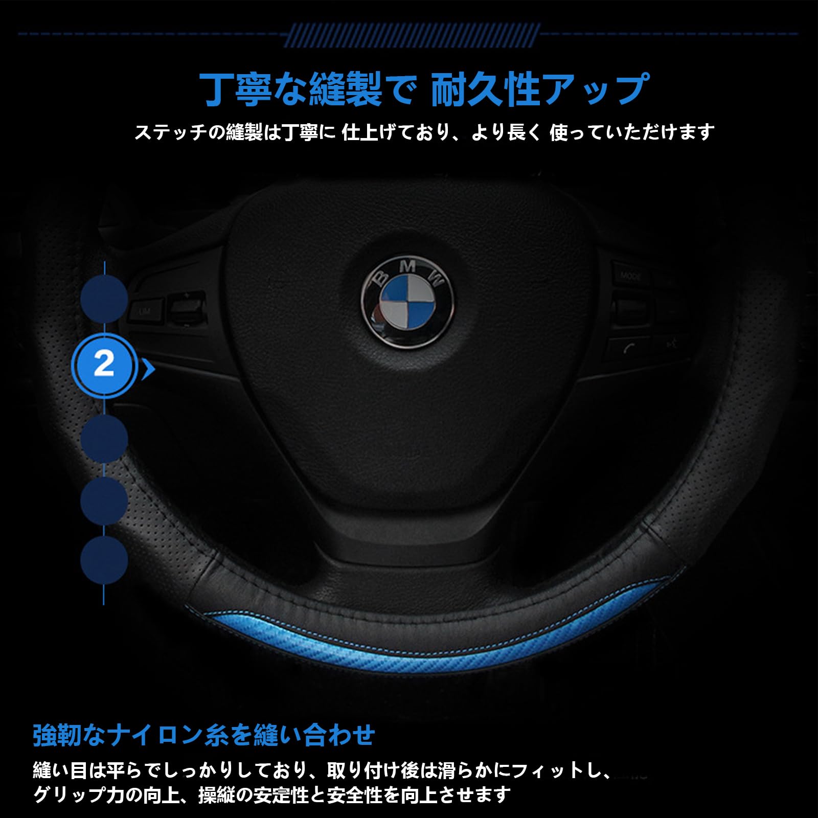 EIING ハンドルカバー 車用 軽自動車 sサイズ 3Dグリップ 滑り止め ステアリングカバー 汎用 おしゃれ 通気性がよい 普通車 ハンドル 保護カバー 高級 内装パーツ 車用品 アクセサリー オールシーズン対応 円形 37~38CM (青)
