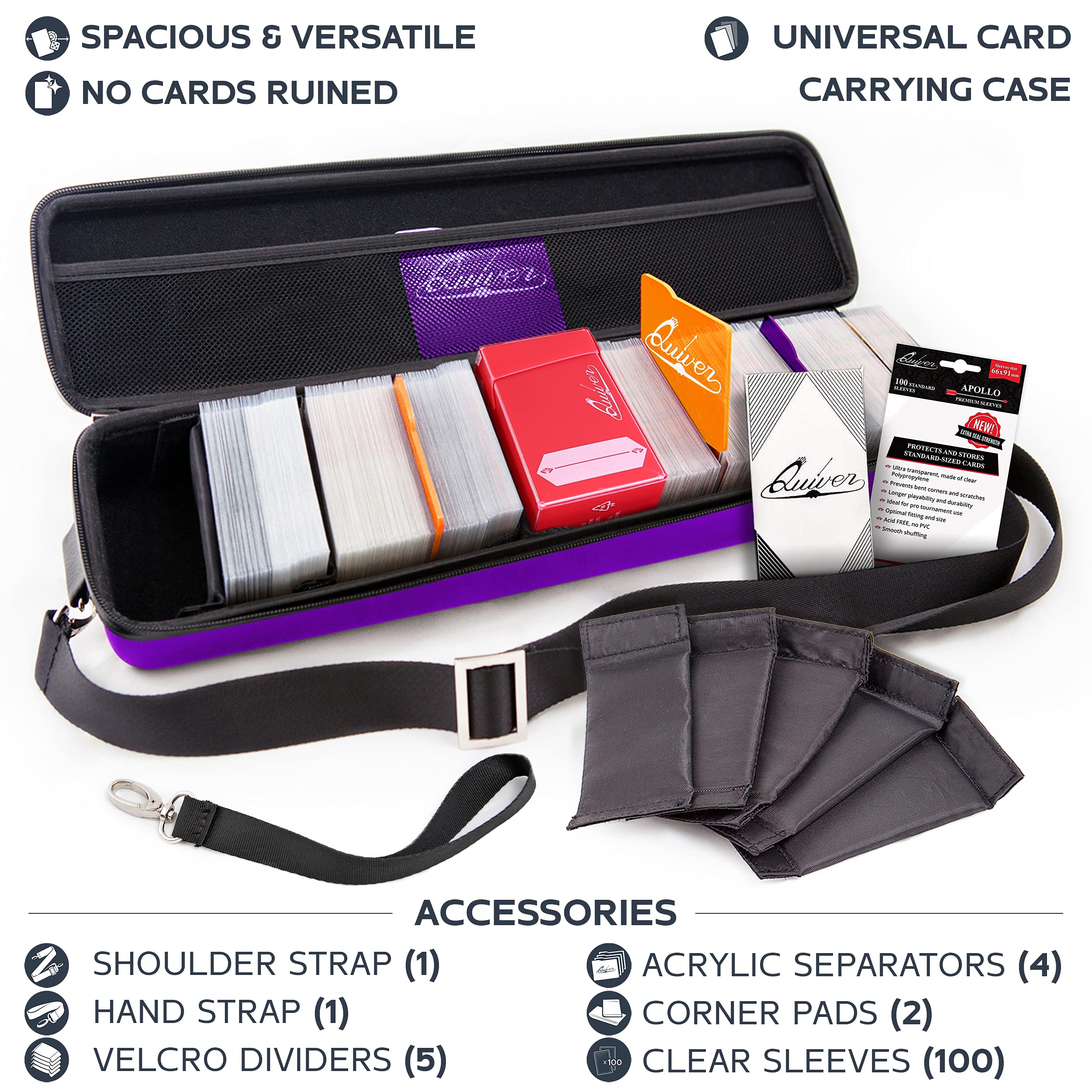 Quiver Time パープルカードケース - MTGデッキに最適、トレーディングカードとプレイングカード用のプレミアム収納ボックスケース - ストラップ、ディバイダー、およびApolloカードスリーブ100枚付き