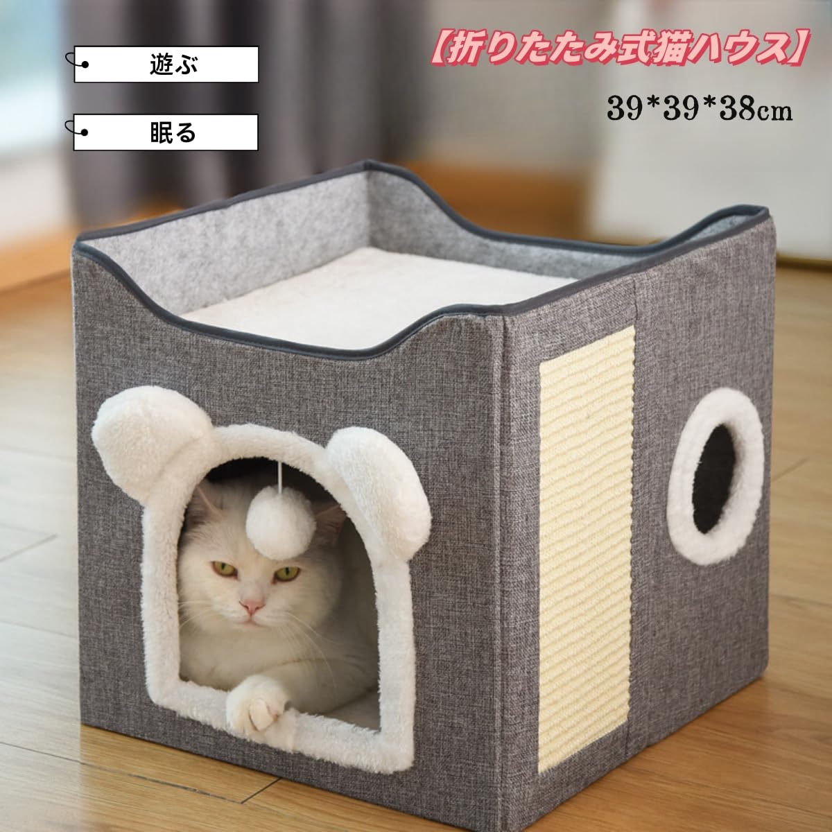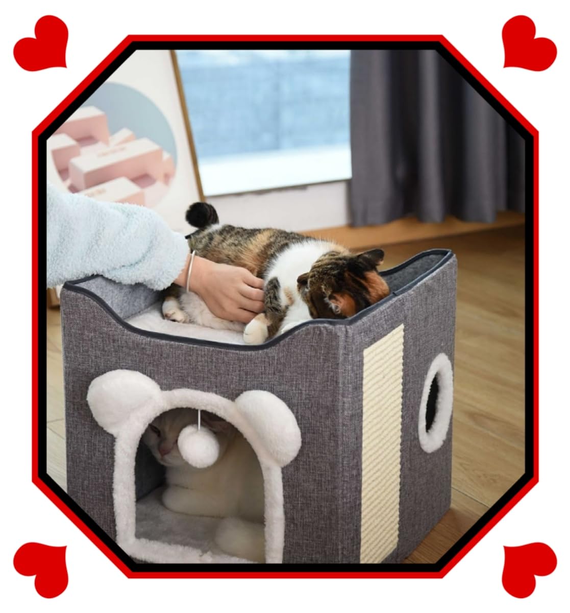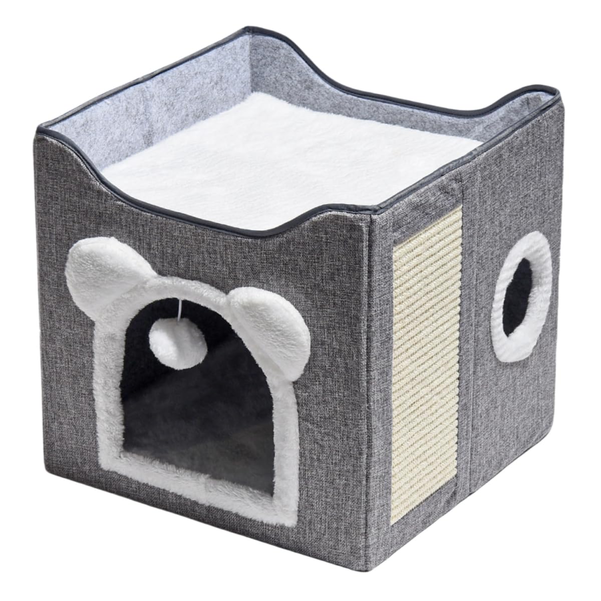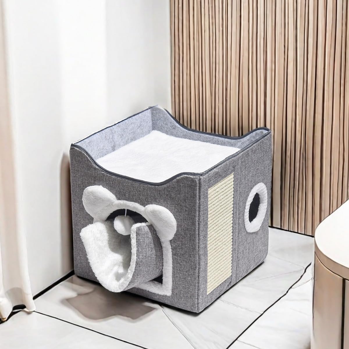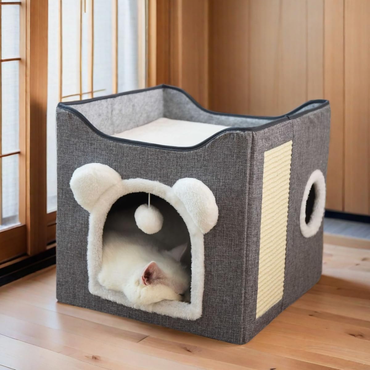 二层小猫屋采用半封闭式设计,适合喜欢隐藏的猫咪天性。