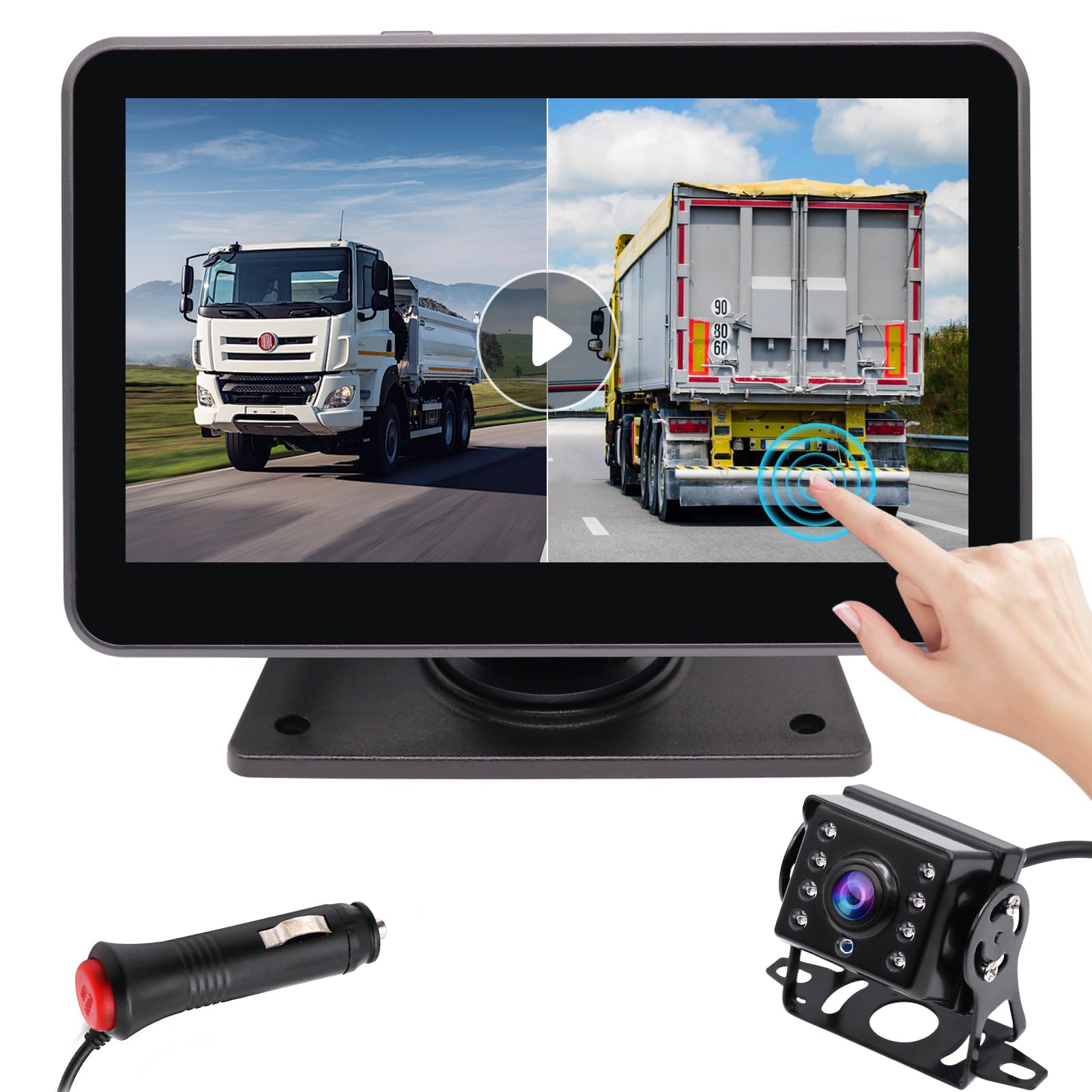 ULOPOPワイヤレスバックカメラモニターセットデジタル信号搭載 IPS液晶 7インチバックモニター ワイヤレスバックカメラ2個搭載 4K画質 デジタル信号 画面分割/反転表示 DC 9-36広電圧 トラック対応 録画機能付 BSD警報機能付き 2年メーカー保証 (MR719-2)
