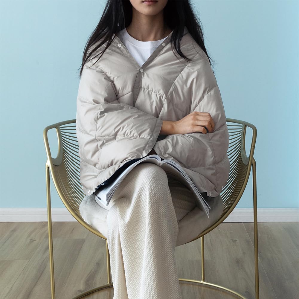 • 様々な着用方法ー多用途のダウンブランケットは四季利用可能です。ダウンブランケットは春秋の暖かい肩掛け、夏のエアコンキルト、冬の腰と膝用毛布になっています。多用途でひざ掛け、肩掛け、コート、スカート、赤ちゃんの寝袋などに使用できます。