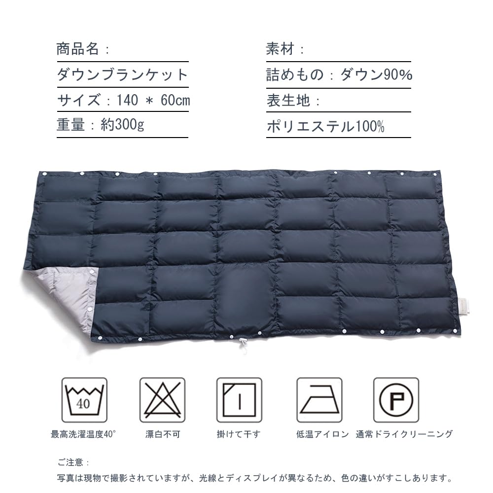 KOKOSUN ダウン ブランケット ひざ掛け 肩掛け 腰巻き 多機能 防寒 冷房対策 スナップボタン付き オフィス 家庭用 車中泊 アウトドア キャンプ 旅行用 収納袋付き (ダークブルーとシルバーグレー, 140*60cm)