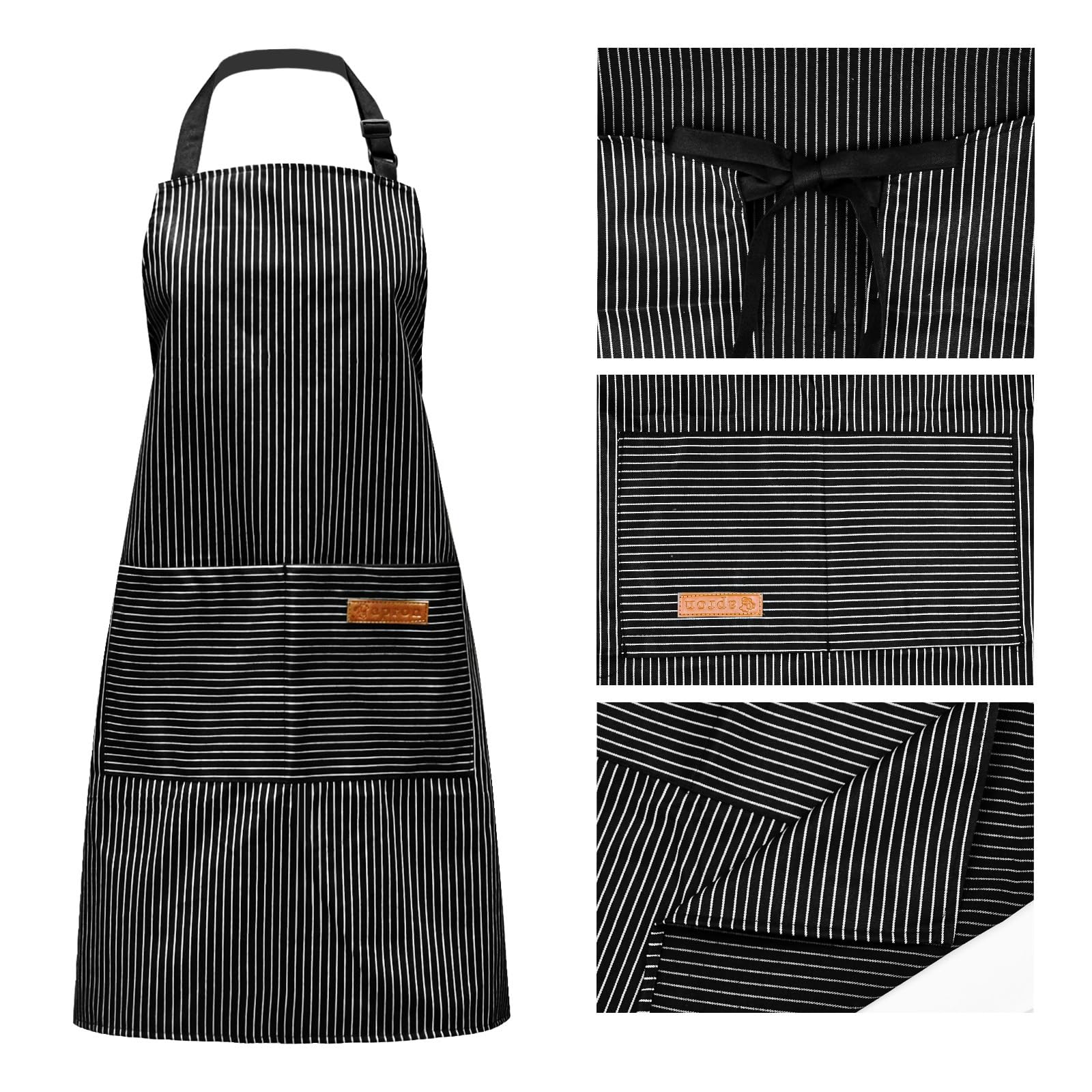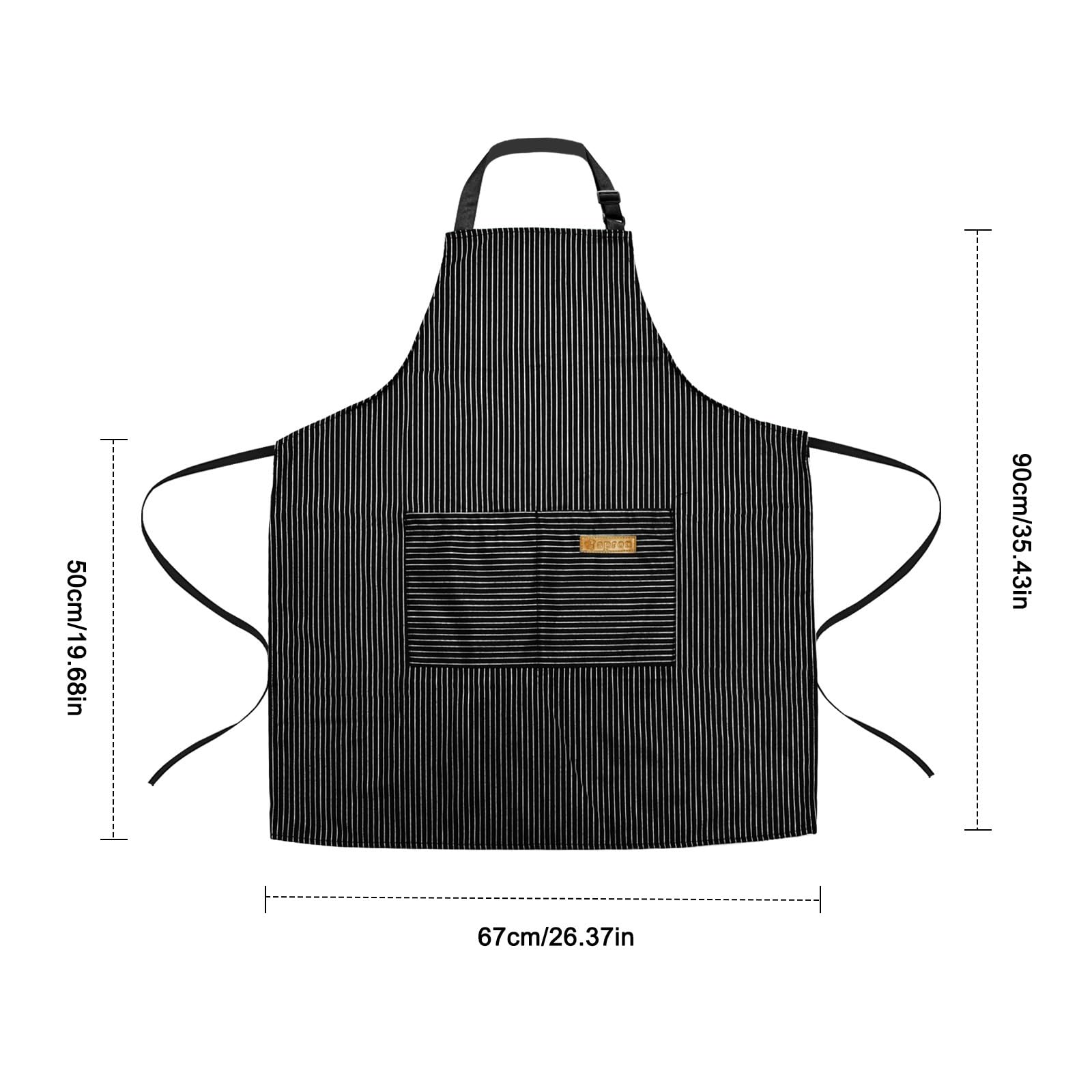 仕様: 素材: コットンとリネン。 色: 黒とグレー。 サイズ: 69 x 64 cm。 重量: 300 グラム。 ボックスの内容: 1 x 黒の縞模様の格子エプロン。 グレーのストライプ格子エプロン x 1。 特徴: 1. 軽くて着心地が良く、洗いやすく乾きやすいので、長く愛用していただけます。 2. 十分な大きさで、優れたカバー力を提供し、汚れ、こぼれ、汚れから保護します。 3. フロントのダブルポケットには、鍵、携帯電話、紙、などの小さなデバイスを収納できます。 4.家庭料理人、シェフ、ウェイター、労働者、画家などに適しています。 注意してください: 1. エプロンを清潔に保つために、オイル染色後はすぐに洗剤で洗ってください。 2. 長寿命を確保するために、洗濯後はエプロンを日光にさらさないでください。 3. エプロンは洗濯機でも手洗いでも洗えますが、洗濯機で洗う際は必ずボタンを保護してください。