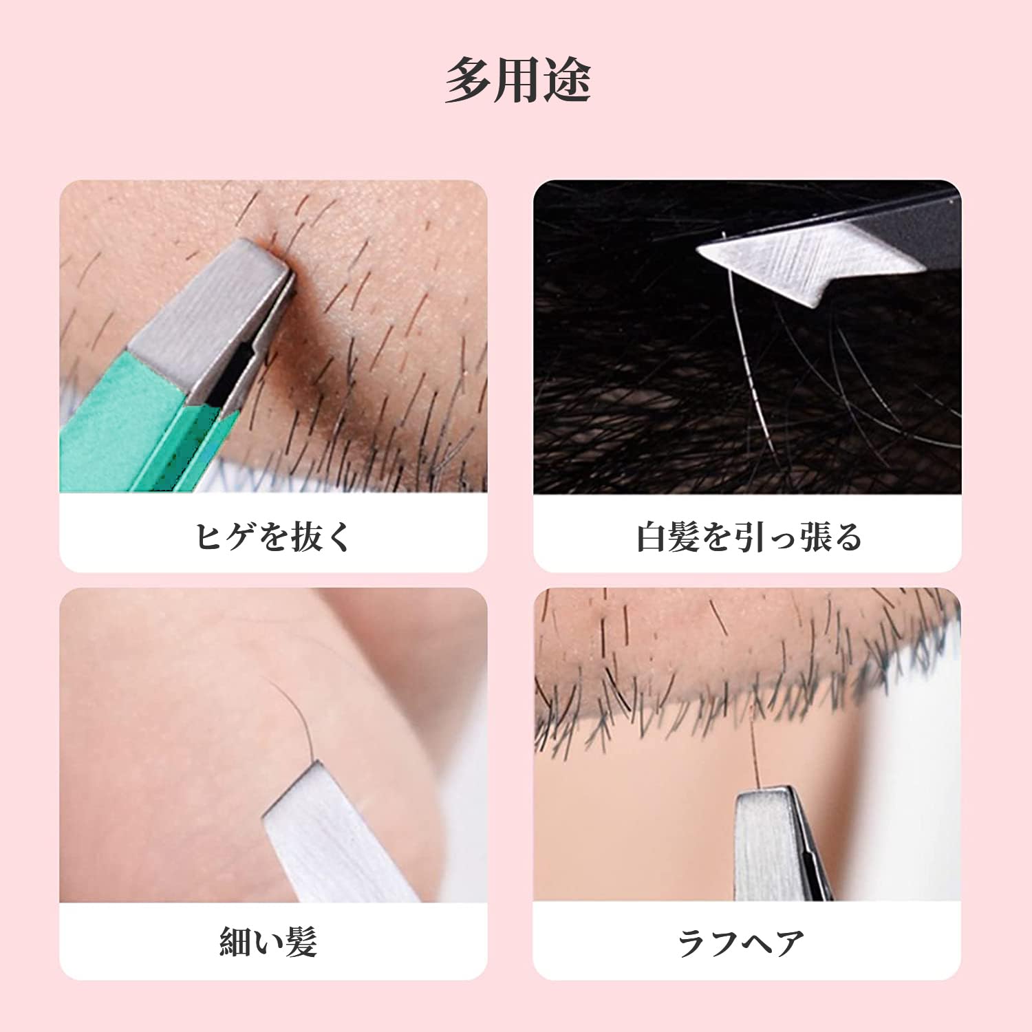 この高品質の毛抜きセットは、お手入れの際に必要不可欠なアイテムです。ステンレス製の4本のピンセットが含まれており、それぞれ異なる形状になっています。先が斜めになっているものは眉毛の手入れに、先が細いものは耳毛やヒゲの処理に最適です。平らなタイプは角質や角栓の除去に便利です。コンパクトなレザーケースに収納できるので、持ち運びも簡単です。精密な作りで、しっかりと毛を挟むことができ、無理なく抜くことができます。自宅で手軽にムダ毛のお手入れができ、清潔で手入れの行き届いた印象を与えてくれます。高級感のあるこのセットは、自分へのご褒美にもおすすめです。