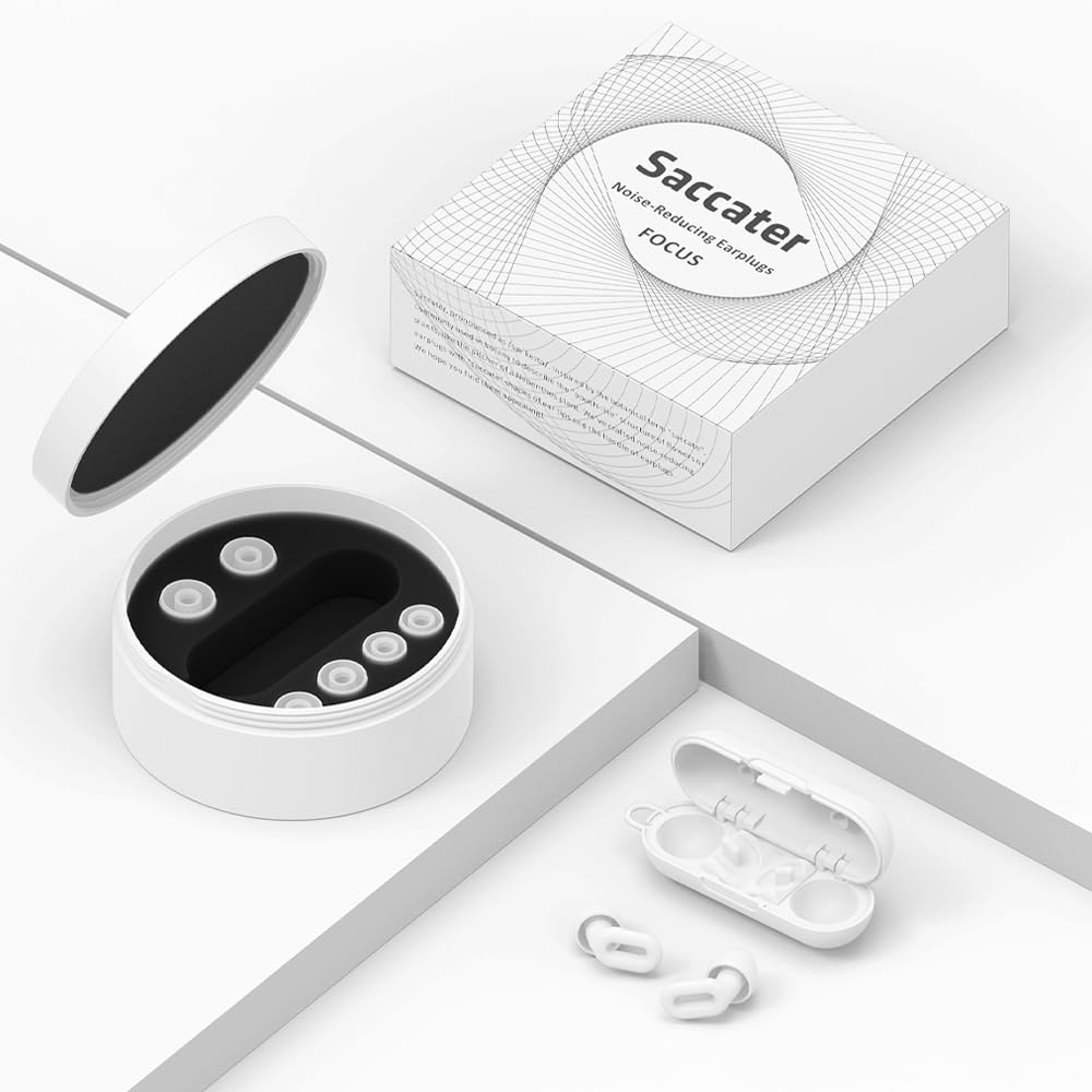 Saccater Focus ノイズリダクション耳栓 - 深い集中、仕事、学び、快適な睡眠、ミソフォニア、旅行用の再利用可能なシリコーン耳栓 - XS/S/M/L、SNR 23 dB, NRR 17 dB (白い, 個)