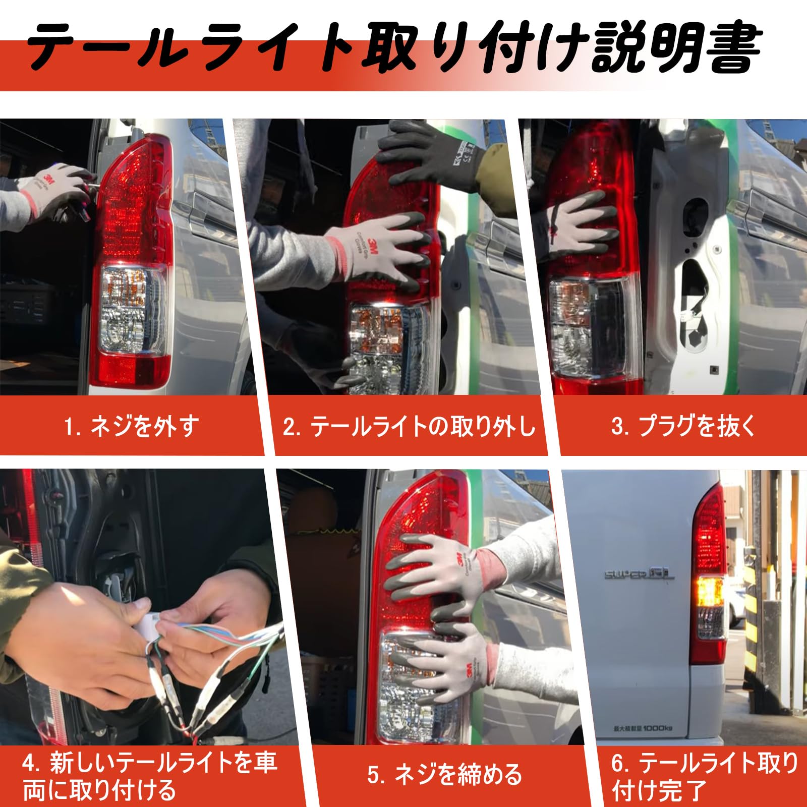 ハイエース レジアスエース 200系専用の純正タイプテールランプが登場!このテールランプは4型のモデルに最適です。スタイリッシュなデザインで、愛車の魅力を引き立てます。