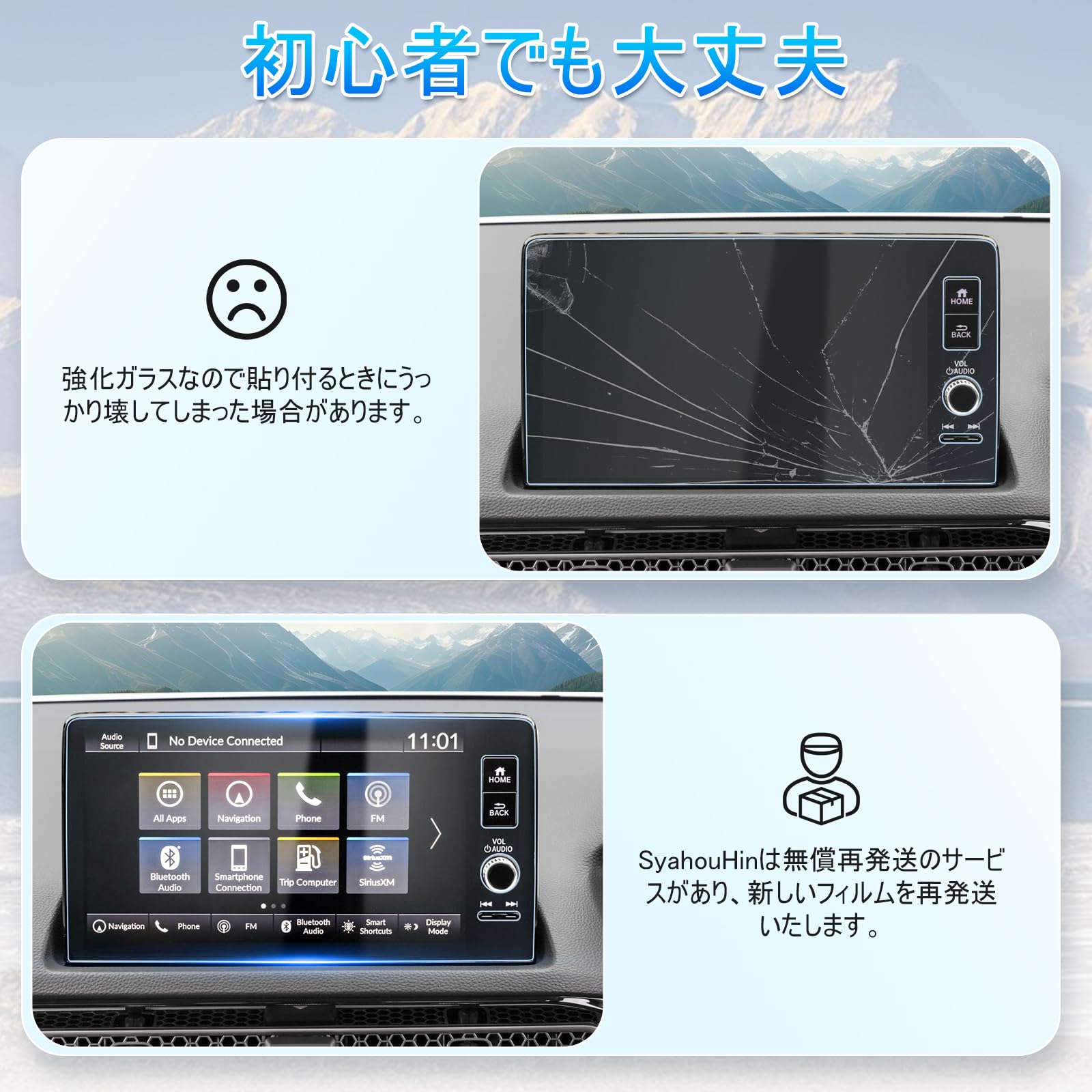 万が一、商品到着時や取り付け中にフィルムが損傷した場合でも、当社は無償での再発送を保証いたします。お客様の満足度を第一に考え、信頼性の高いサポートを提供いたします。